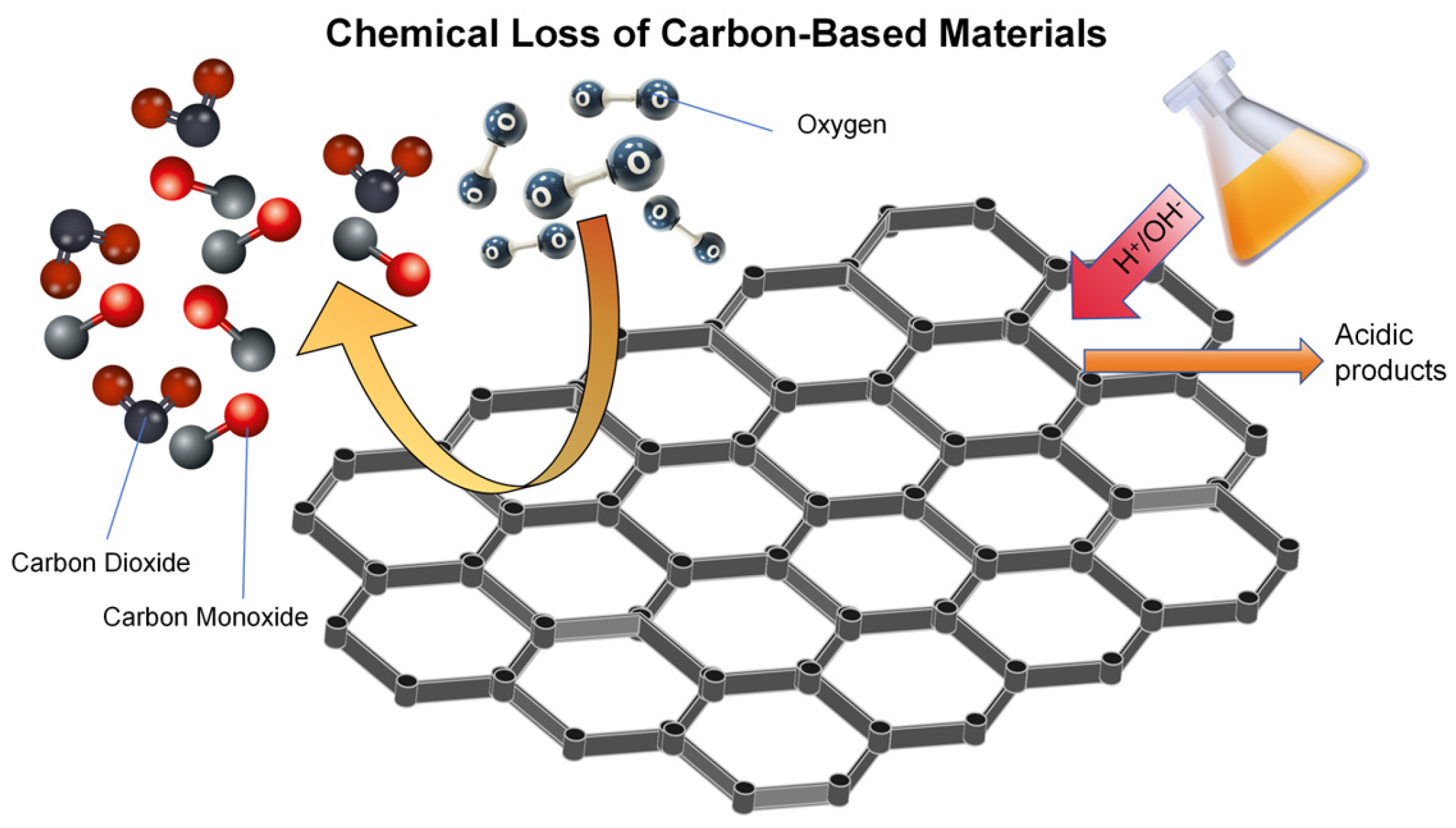 | Acid/base corrosion | Carbon materials react with strong acids/alkalis (such as oxidation and proton exchange). | Strong acid, strong alkali | Structural fragmentation, introduction of functional groups, and increased porosity | Activated carbon, carbon felt, carbon composite materials |