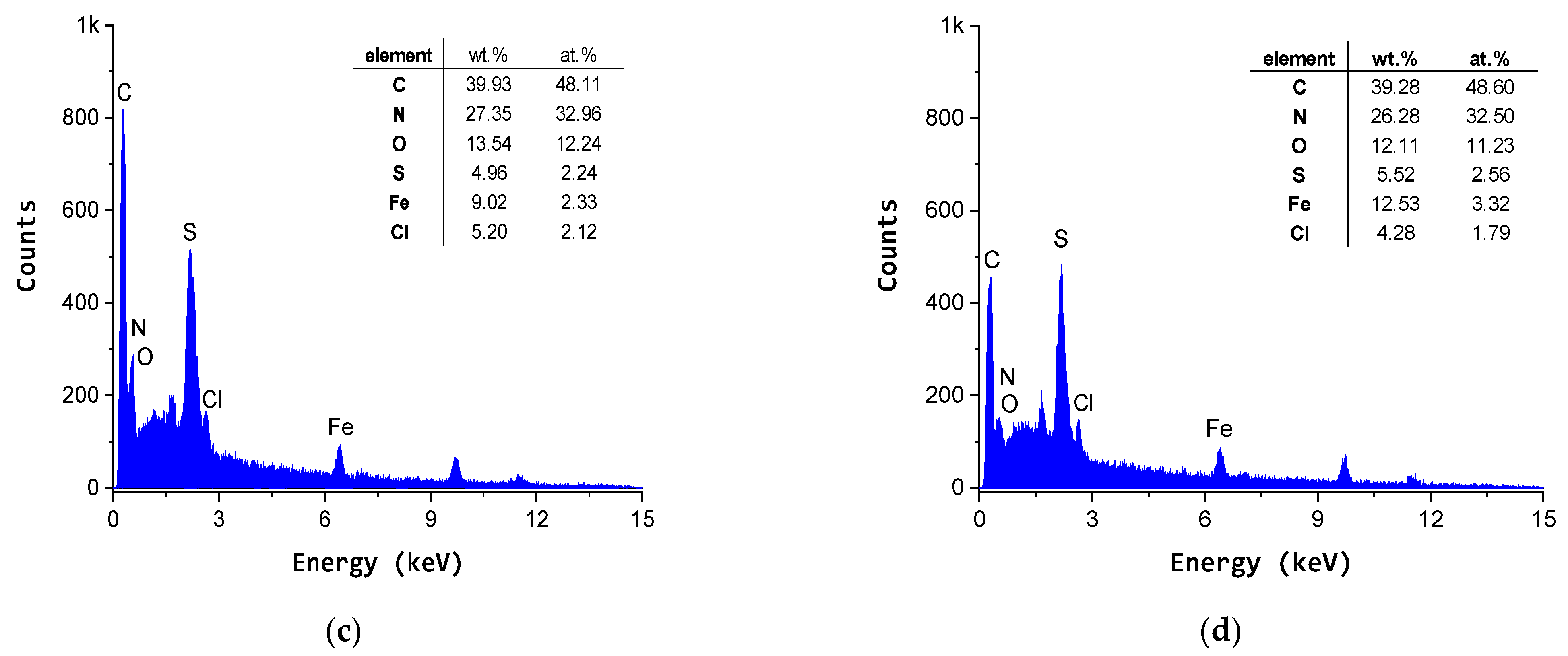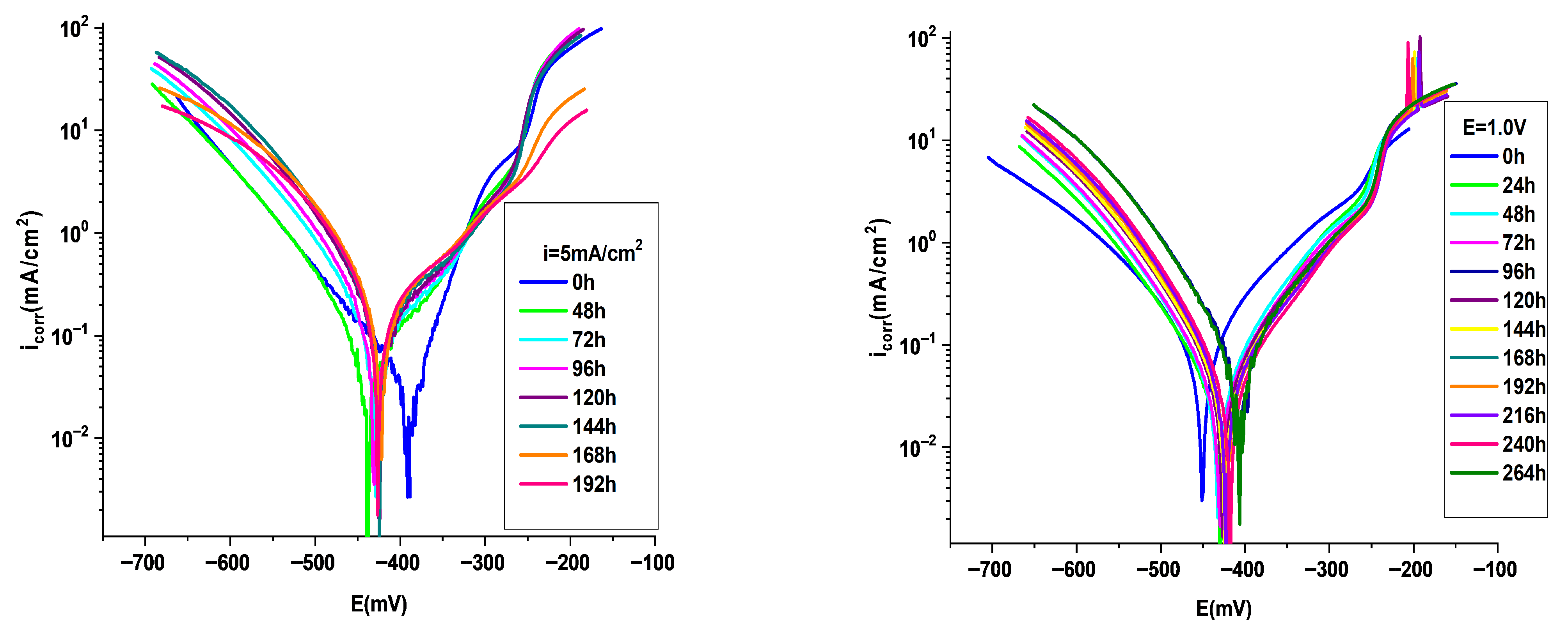 - Branzoi, F.; Băran, A.; Mihai, M.A.; Paraschiv, A. Anticorrosive Effect of New Polymer Composite Coatings on Carbon Steel in Aggressive Environments by Electrochemical Procedures. Coatings 2025, 15, 359–361. [Google Scholar] [CrossRef]