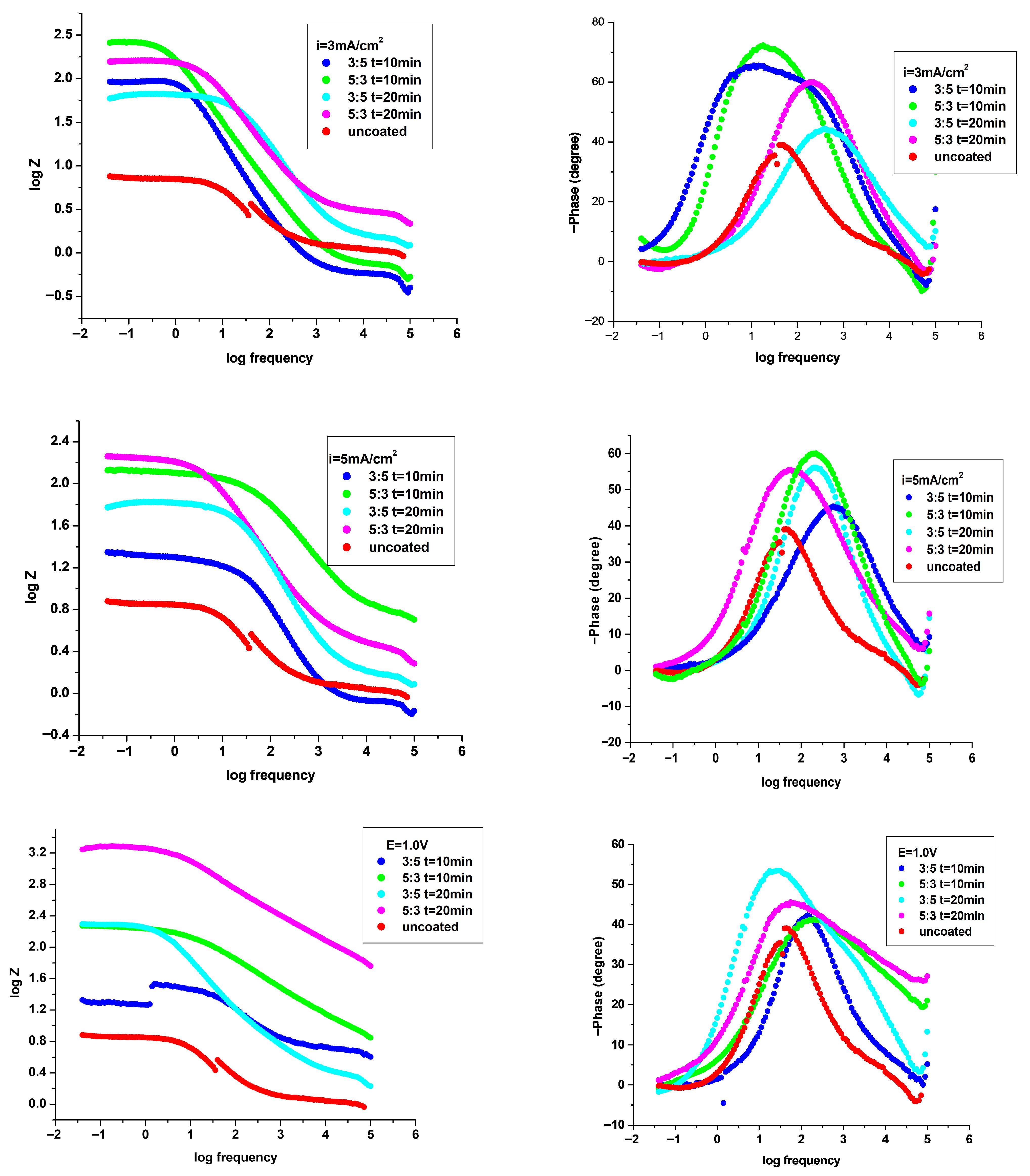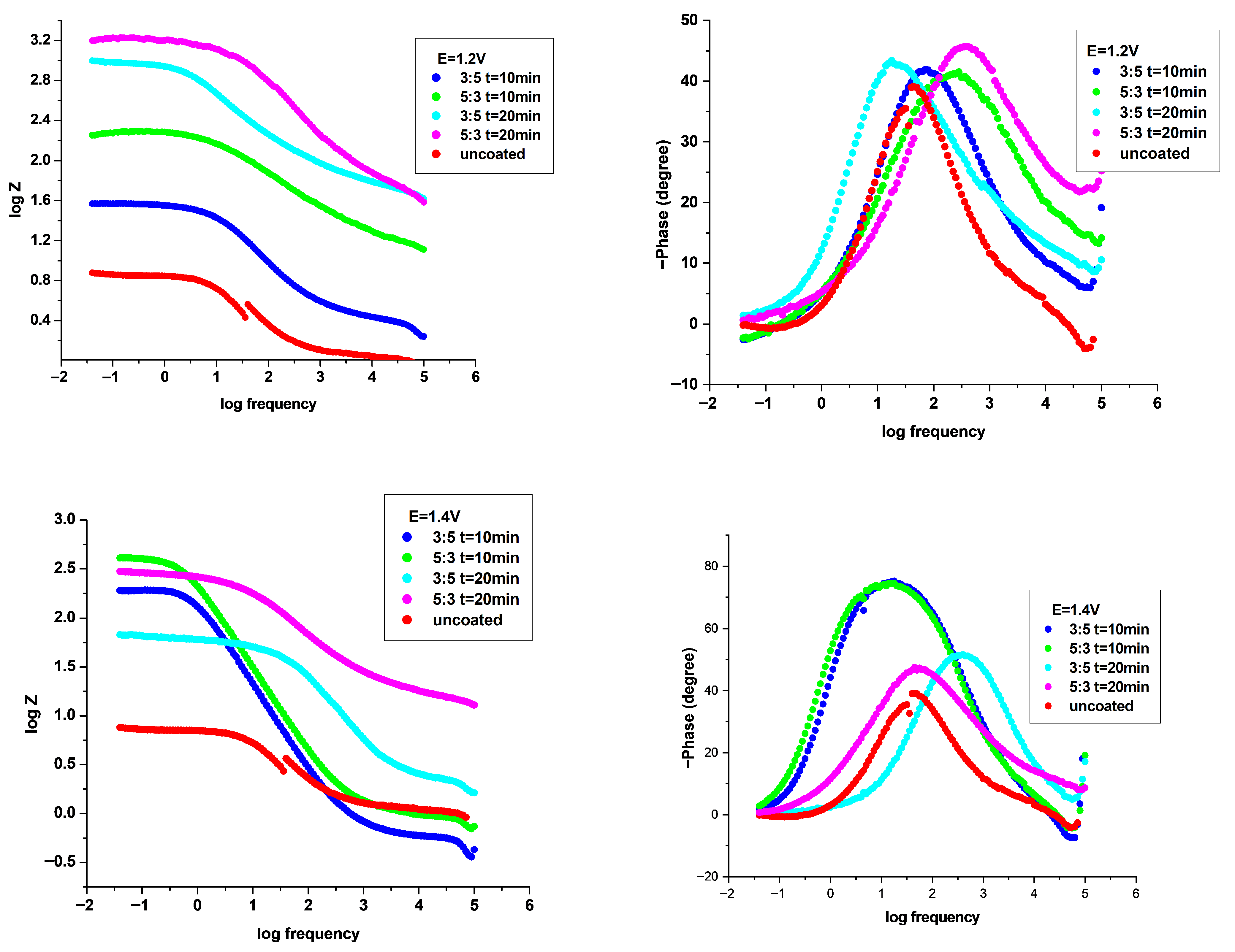 3.4.2. Electrochemical Impedance Spectroscopy (EIS) Investigation