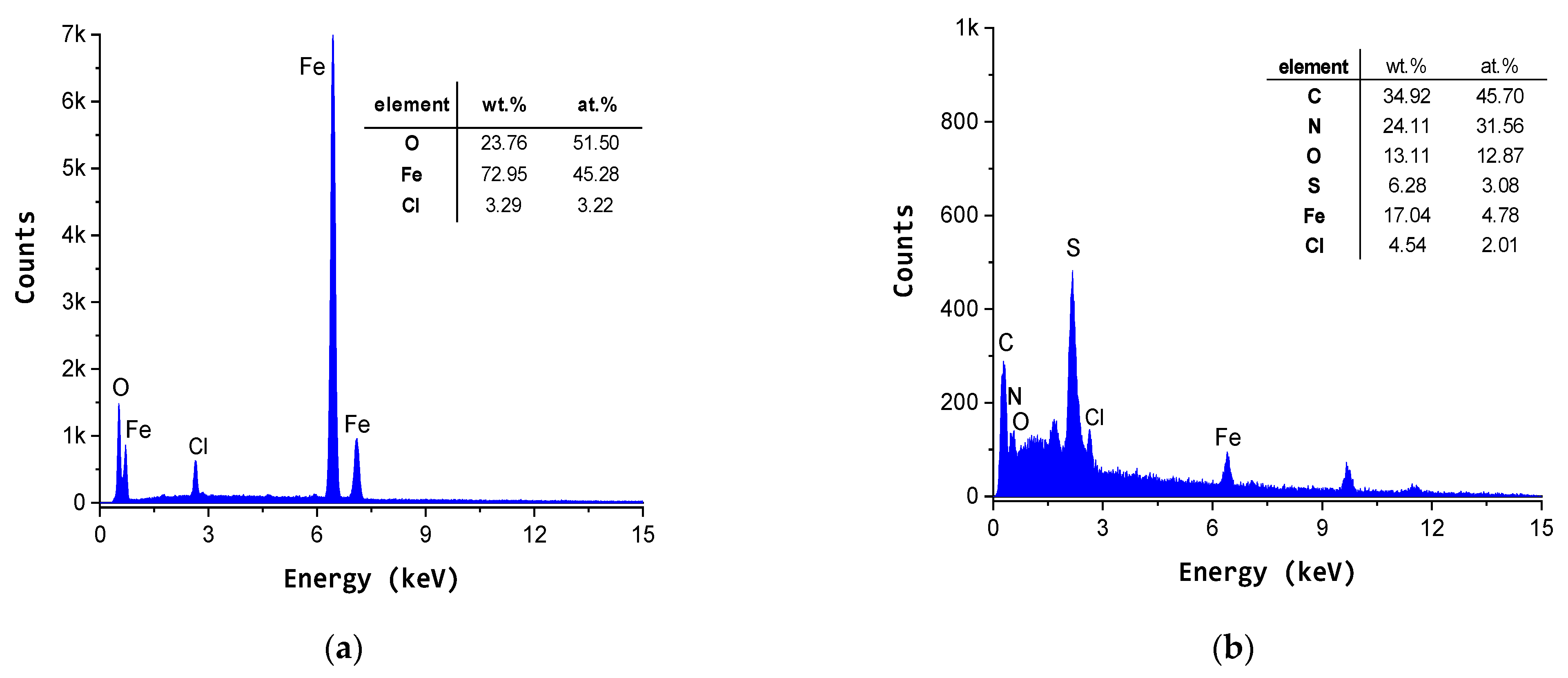 - Xue, S.; Ma, Y.; Miao, Y.; Li, W. Anti-Corrosion Performance of Conductive Copolymers of Polyaniline/Polythiophene on a Stainless-Steel Surface in Acidic Media. Int. J. Nanosci. 2020, 19, 1950023. [Google Scholar] [CrossRef]