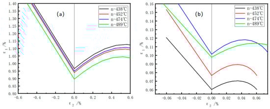 As shown in Figure 11, the specimen coiled at 438 °C exhibits the highest forming limit during the uniform deformation stage (Figure 11a) but the lowest during the necking deformation stage (Figure 11b), resulting in a relatively low final HER. In contrast, the specimen coiled at 452 °C demonstrates high forming limits in both stages, leading to the best hole expansion performance among the four compared samples. The 452 °C specimen shows intermediate forming limits and HER values in both deformation stages.