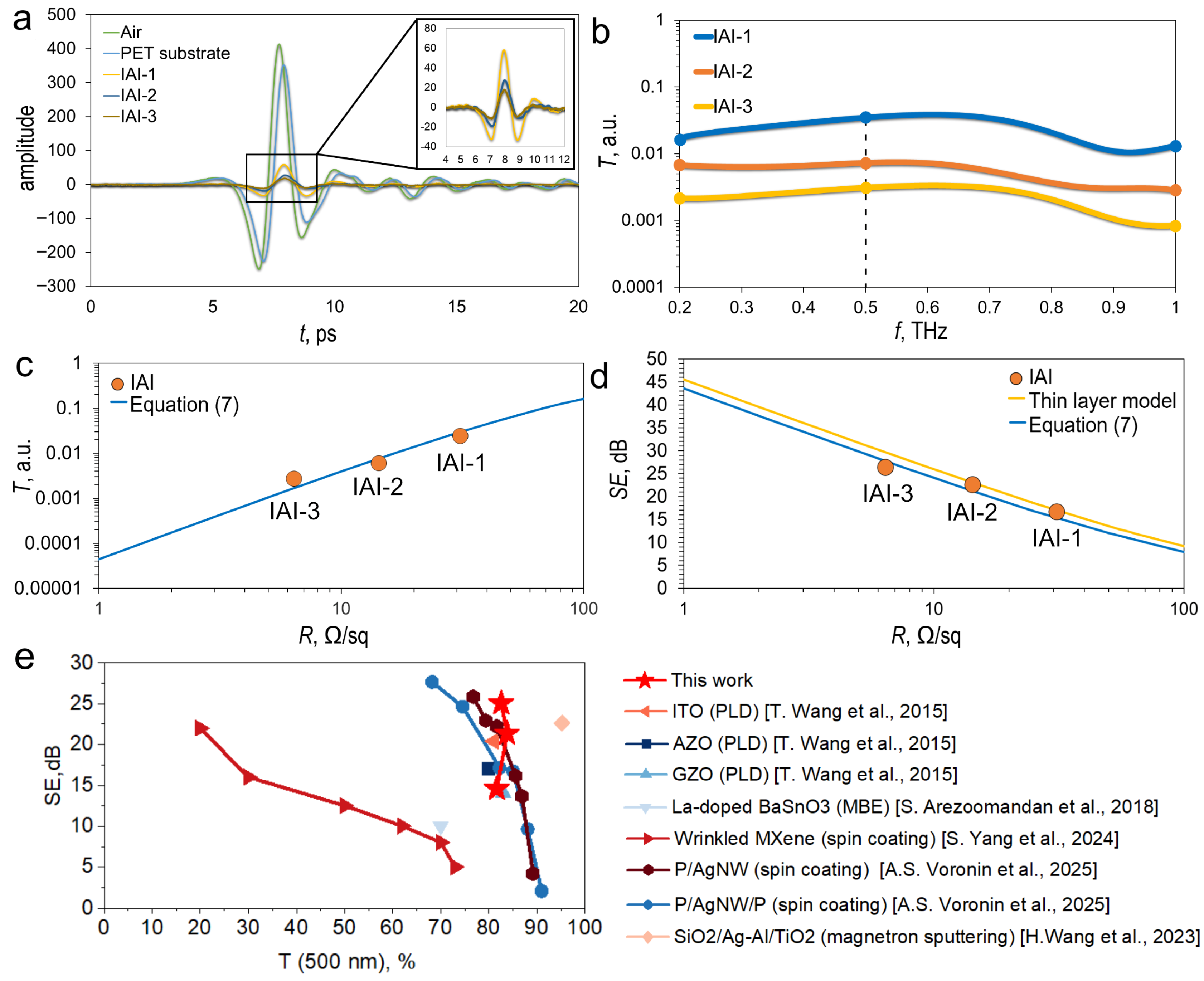 - Voronin, A.; Bril’, I.; Pavlikov, A.; Makeev, M.; Mikhalev, P.; Parshin, B.; Fadeev, Y.; Khodzitsky, M.; Simunin, M.; Khartov, S. THz Shielding Properties of Optically Transparent PEDOT:PSS/AgNW Composite Films and Their Sandwich Structures. Polymers 2025, 17, 321. [Google Scholar] [CrossRef] [PubMed]