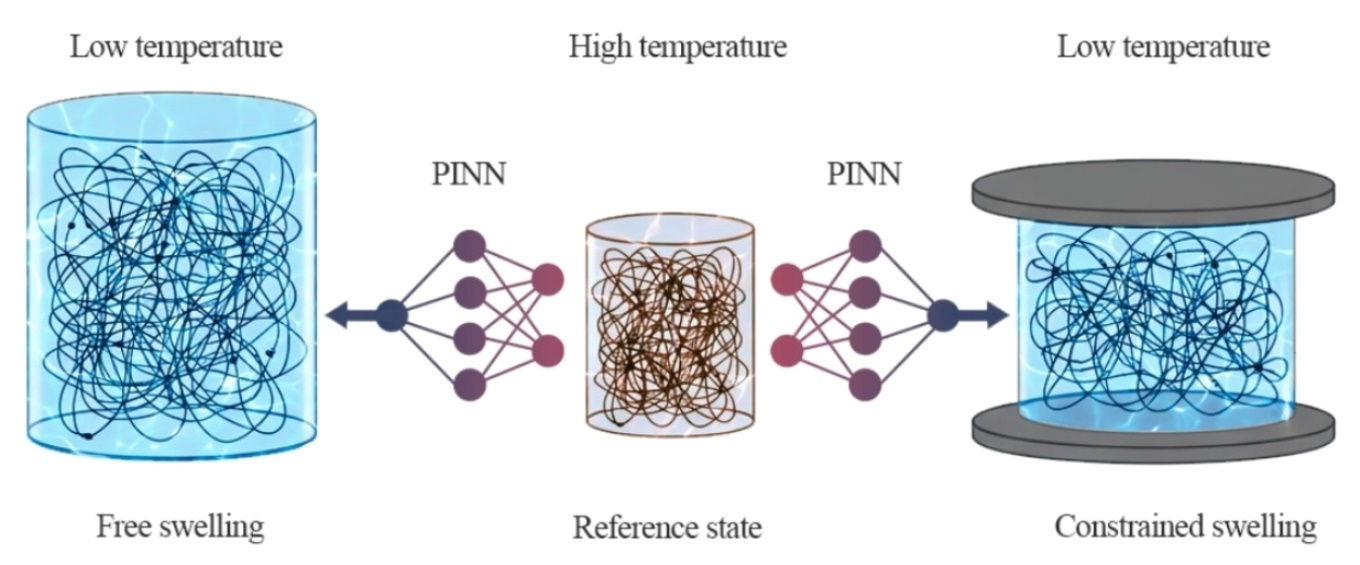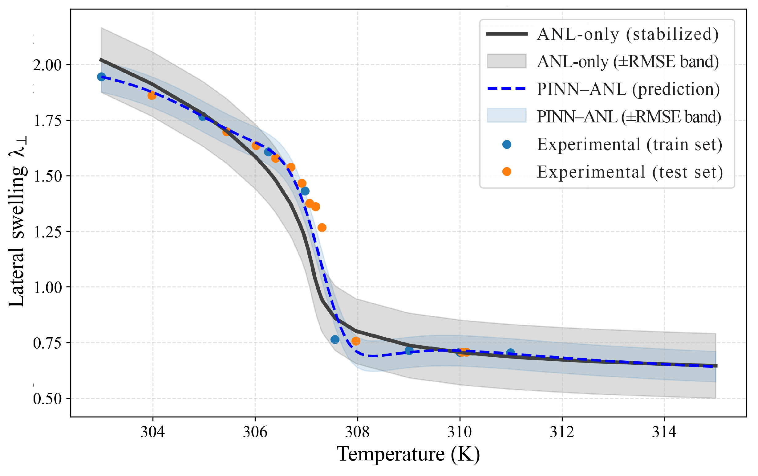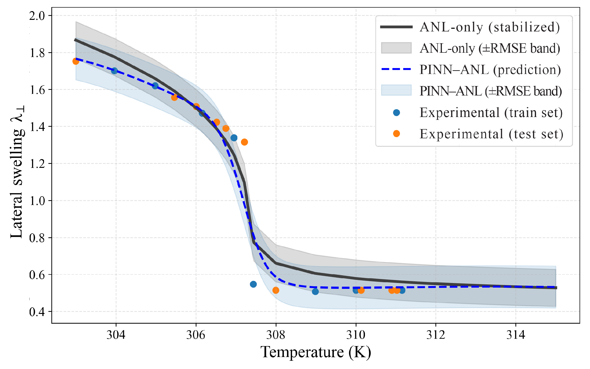 Takmili SA, Choi E, Ostadrahimi A, Baghani M. Physics-Informed Neural Networks for Thermo-Responsive Hydrogel Swelling: Integrating Constitutive Models with Sparse Experimental Data. Materials. 2025; 18(23):5401. https://doi.org/10.3390/ma18235401