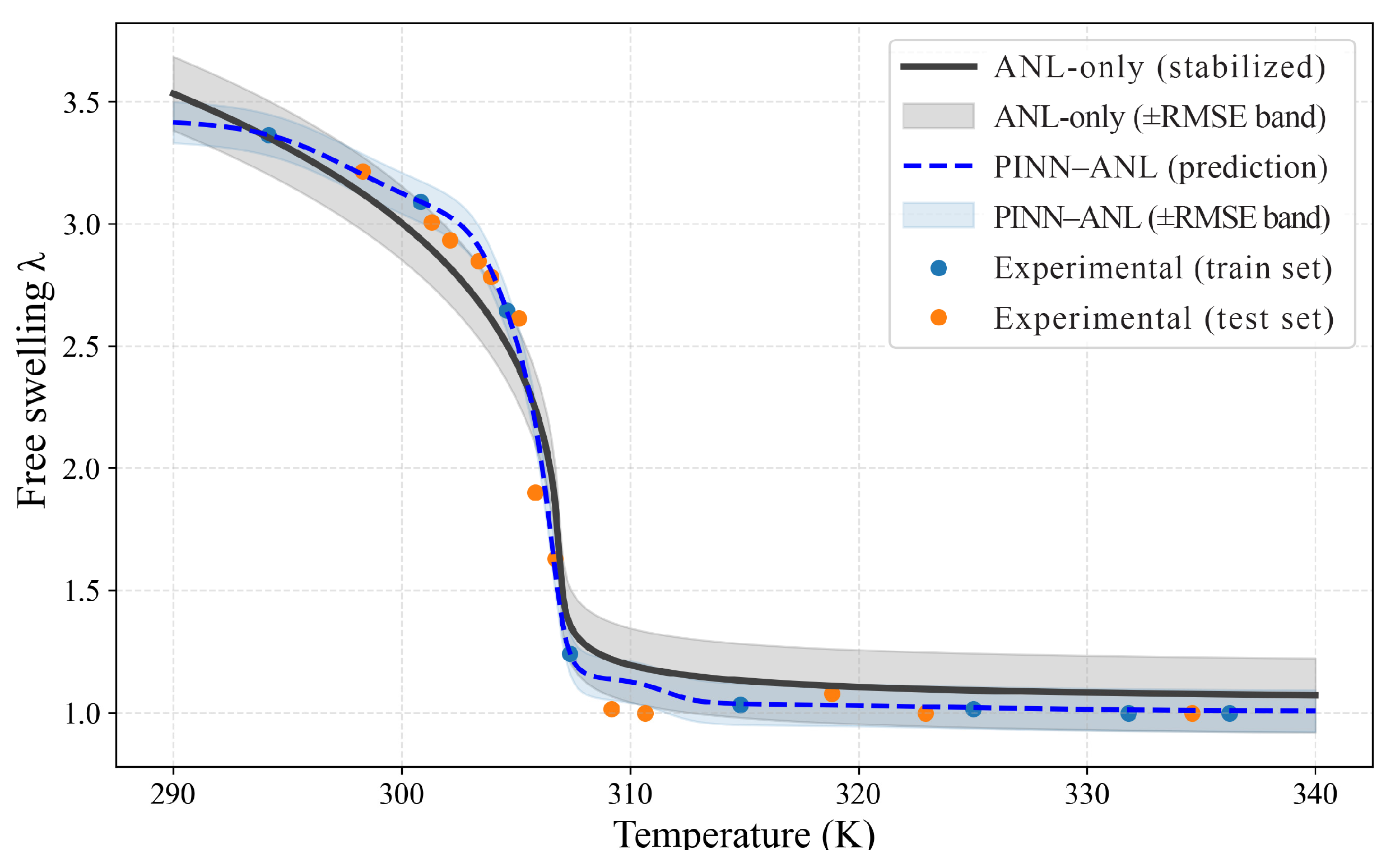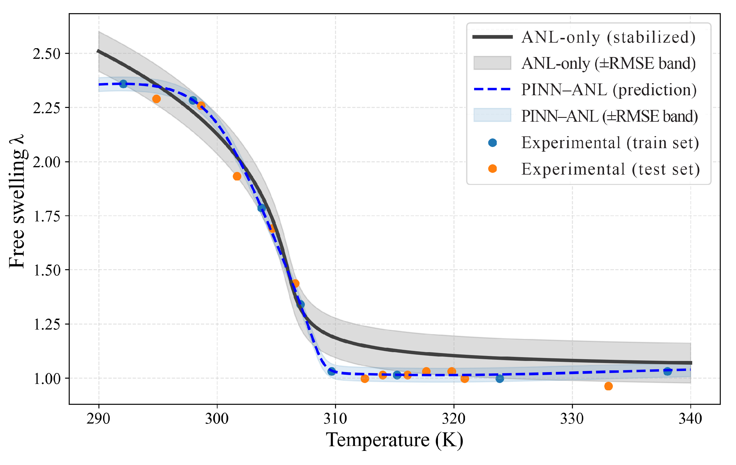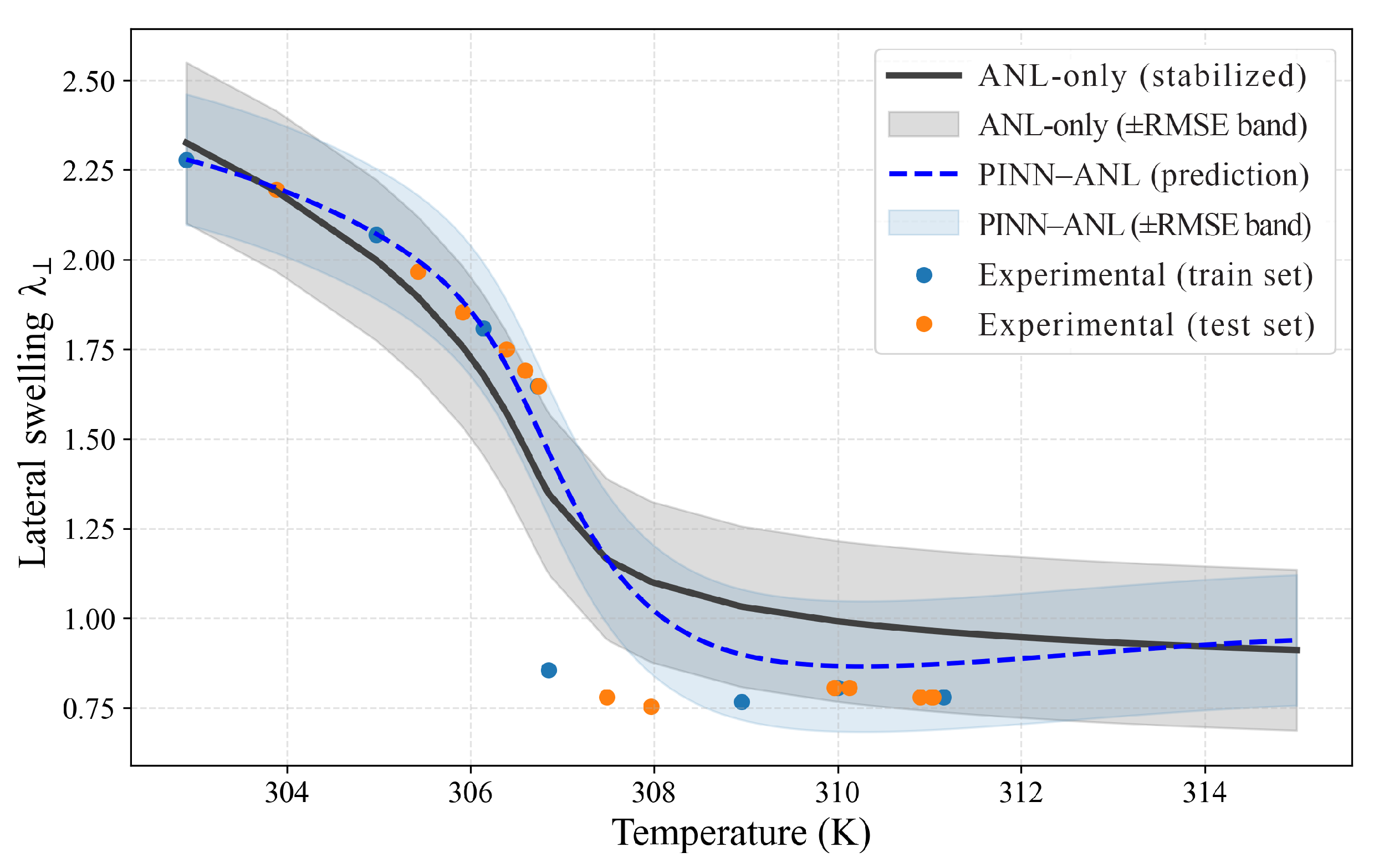 Takmili SA, Choi E, Ostadrahimi A, Baghani M. Physics-Informed Neural Networks for Thermo-Responsive Hydrogel Swelling: Integrating Constitutive Models with Sparse Experimental Data. Materials. 2025; 18(23):5401. https://doi.org/10.3390/ma18235401