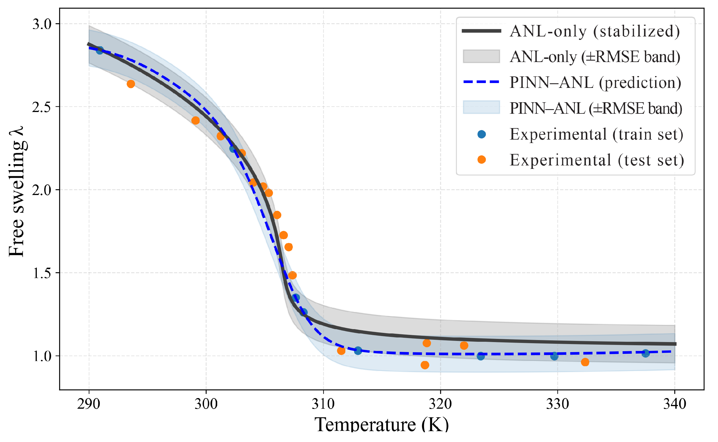Chicago/Turabian StyleTakmili, Seyed Amirmasoud, Eunsoo Choi, Alireza Ostadrahimi, and Mostafa Baghani. 2025. "Physics-Informed Neural Networks for Thermo-Responsive Hydrogel Swelling: Integrating Constitutive Models with Sparse Experimental Data" Materials 18, no. 23: 5401. https://doi.org/10.3390/ma18235401