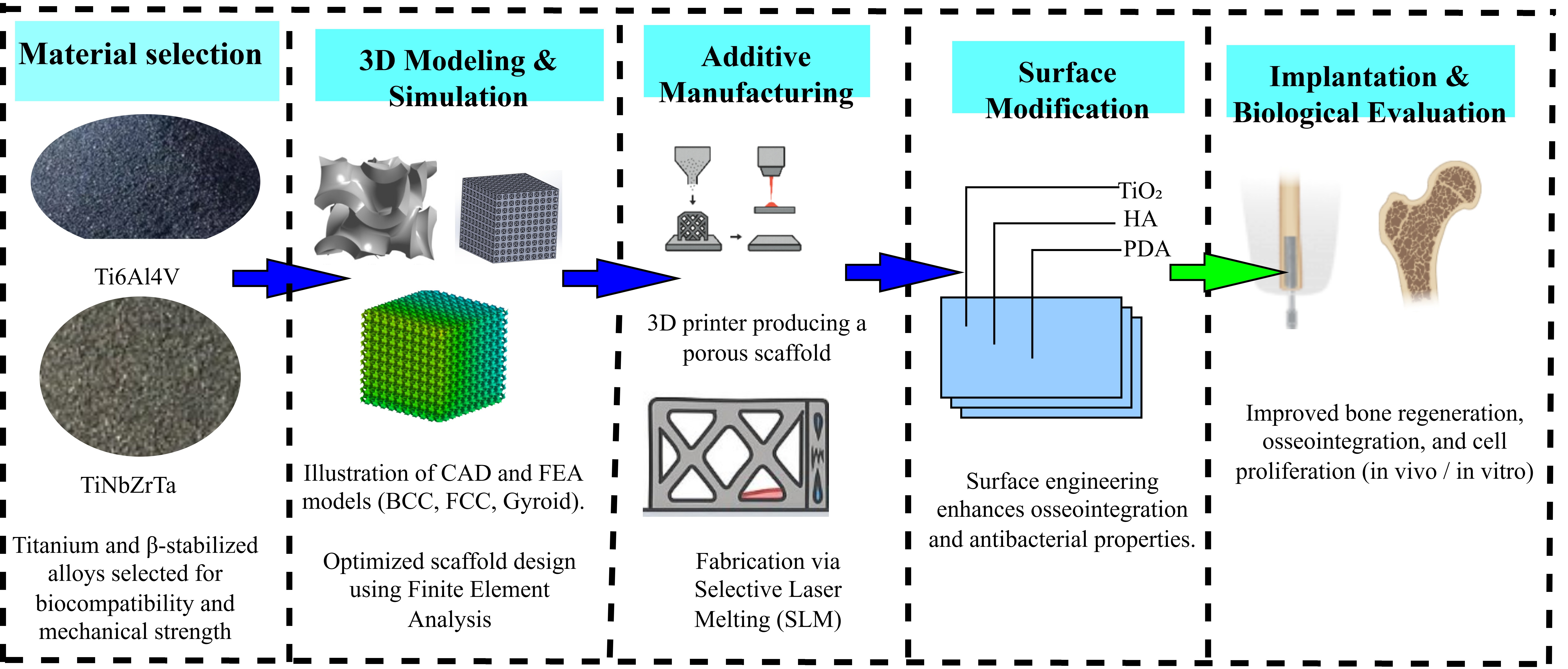 Advances in Titanium-Based Biomaterial for Human Bone Scaffolds: Narrative Review on Design, Fabrication, Surface Engineering, Implantation, and Biological Evaluation