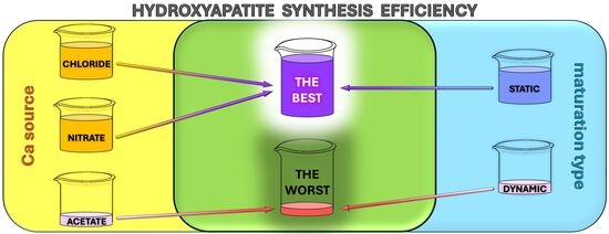 - Karakas, A.; Yoruc, A.B.H.; Erdogan, D.C.; Dogan, M. Effect of different calcium precursors on biomimetic hydroxyapatite powder properties. Acta Phys. Pol. A 2012, 121, 236–239. [Google Scholar] [CrossRef]