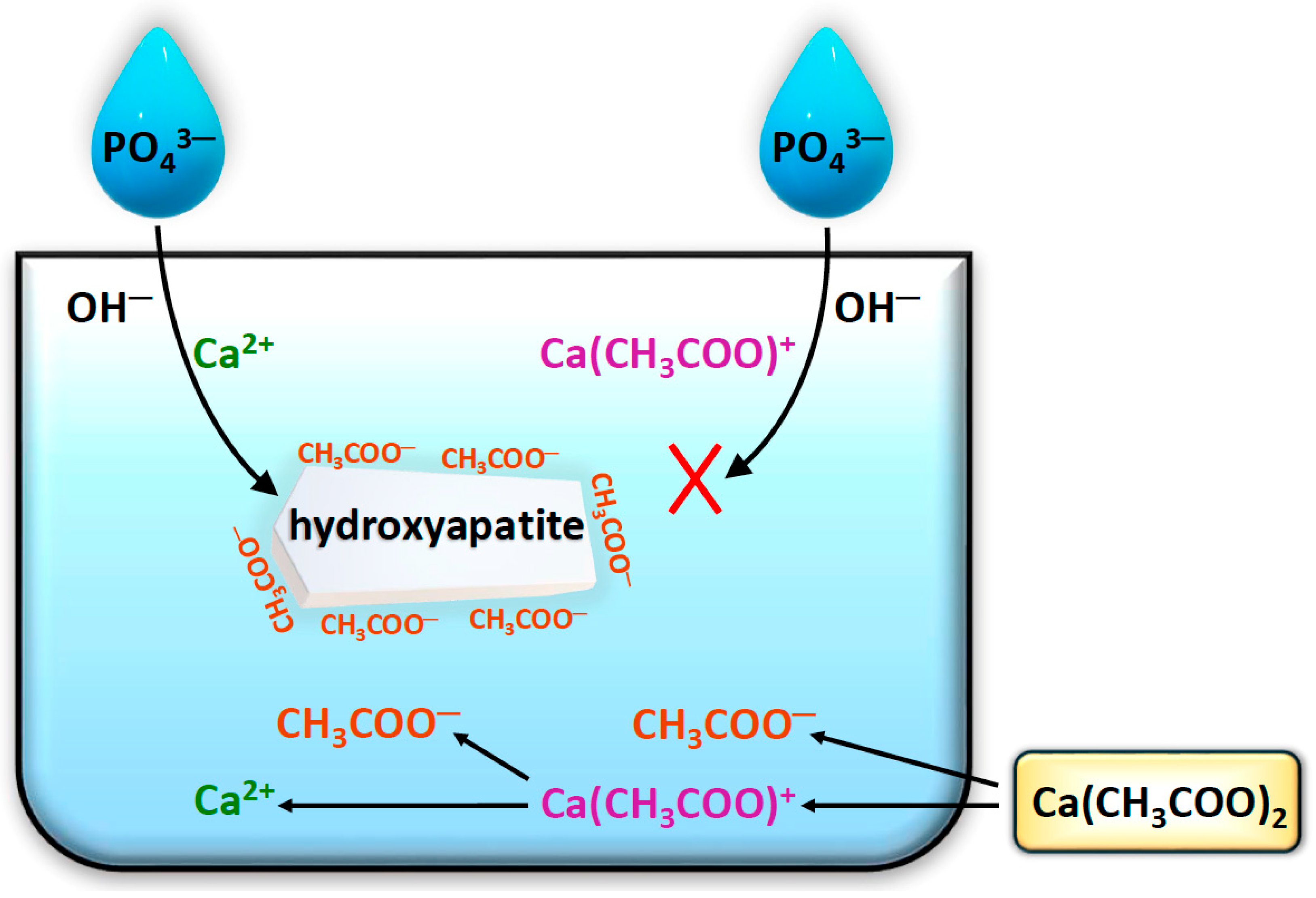 - Stepuk, A.A.; Veresov, A.G.; Putlyaev, V.I.; Tret’yakov, Y.D. The influence of NO3−, CH3COO−, and Cl− ions on the morphology of calcium hydroxyapatite crystals. Dokl. Phys. Chem. 2007, 412, 11–14. [Google Scholar] [CrossRef]