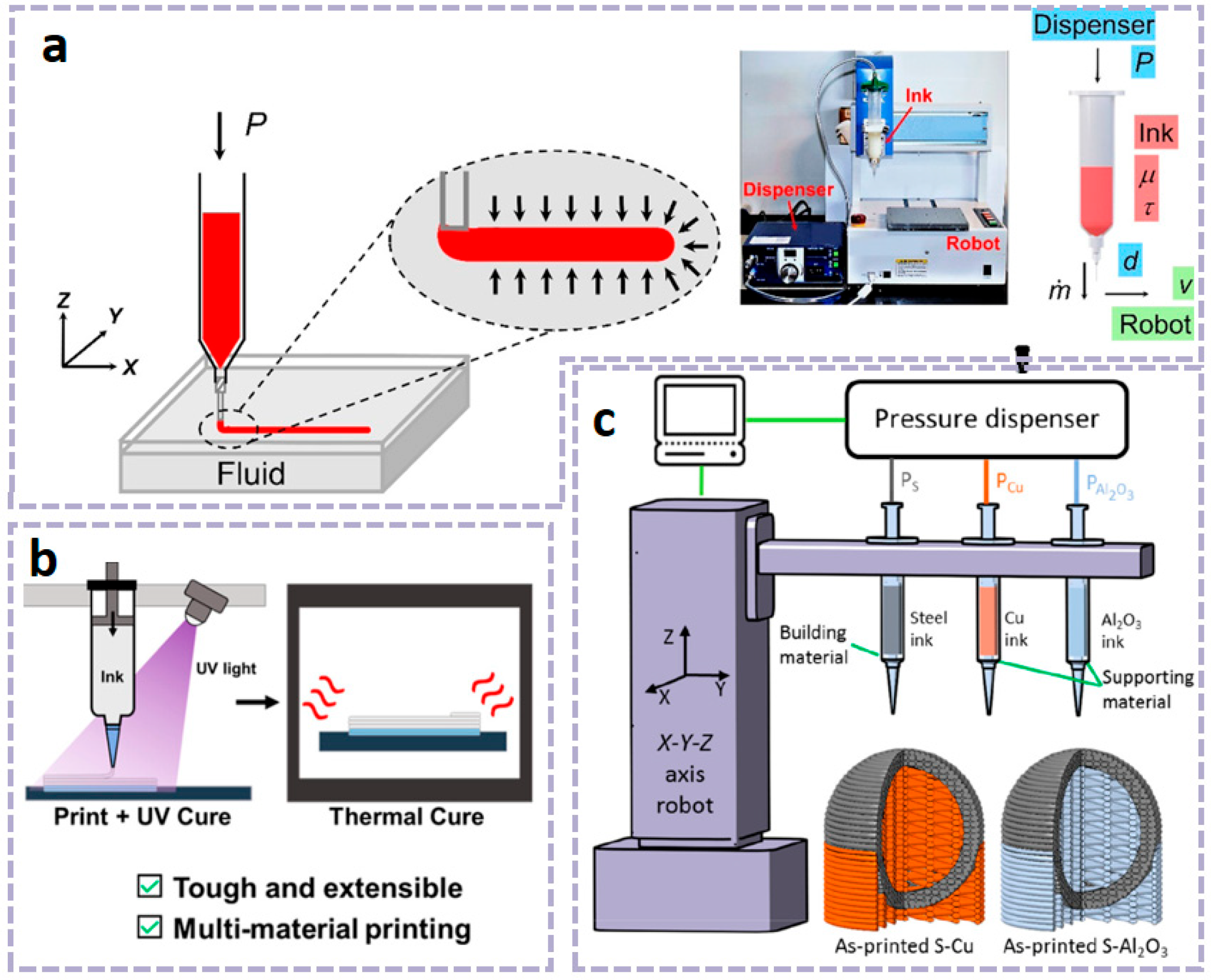 - Yu, Z.; Sun, X.; Zhu, Y.; Zhou, E.; Cheng, C.; Zhu, J.; Yang, P.; Zheng, D.; Zhang, Y.; Panahi Sarmad, M.; et al. Direct Ink Writing 3D Printing Elastomeric Polyurethane Aided by Cellulose Nanofibrils. ACS Nano 2024, 18, 28142–28153. [Google Scholar] [CrossRef]