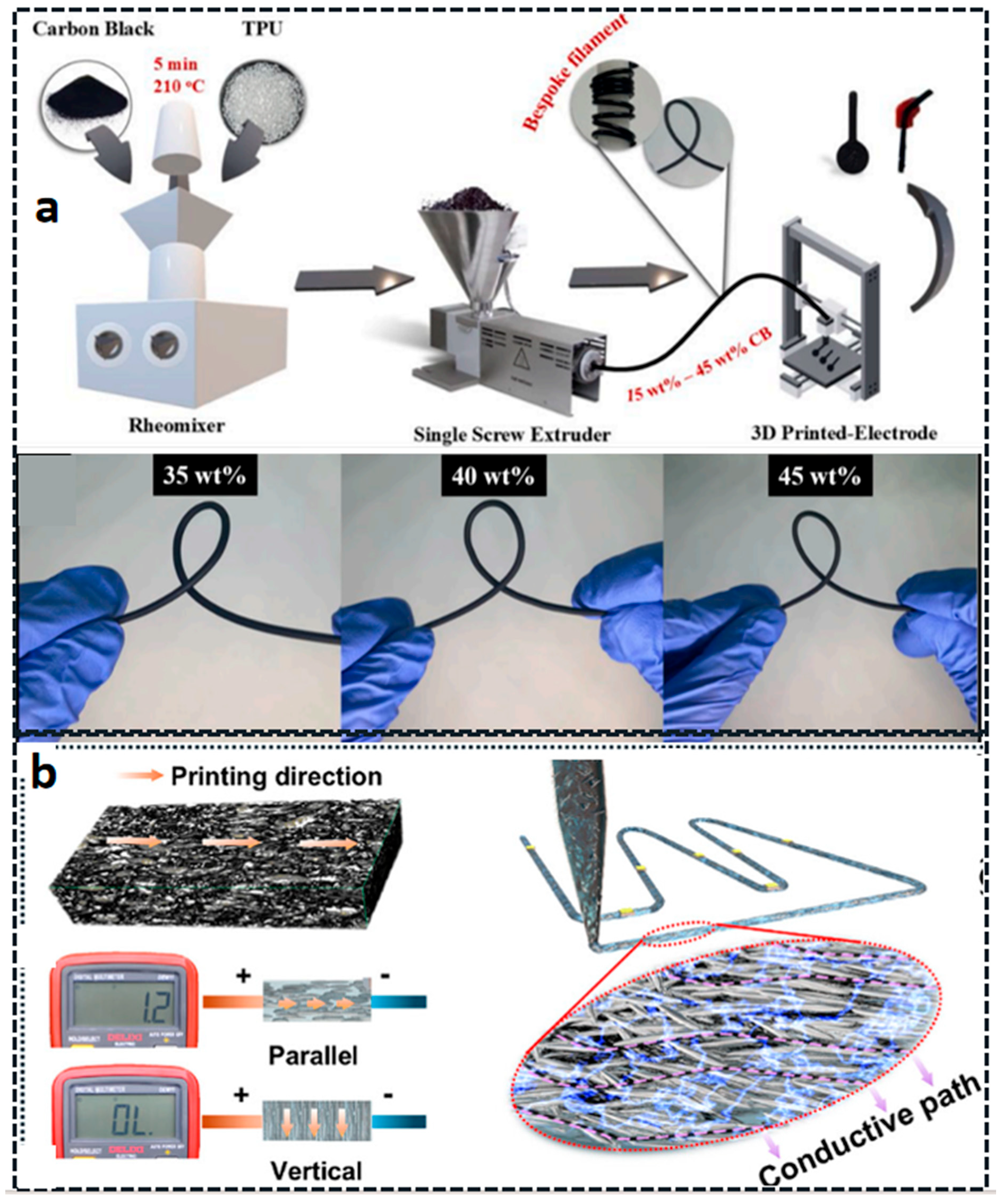 - Liu, H.; Zhang, H.; Han, W.; Lin, H.; Li, R.; Zhu, J.; Huang, W. 3D Printed Flexible Strain Sensors: From Printing to Devices and Signals. Adv. Mater. 2021, 33, 2004782. [Google Scholar] [CrossRef]