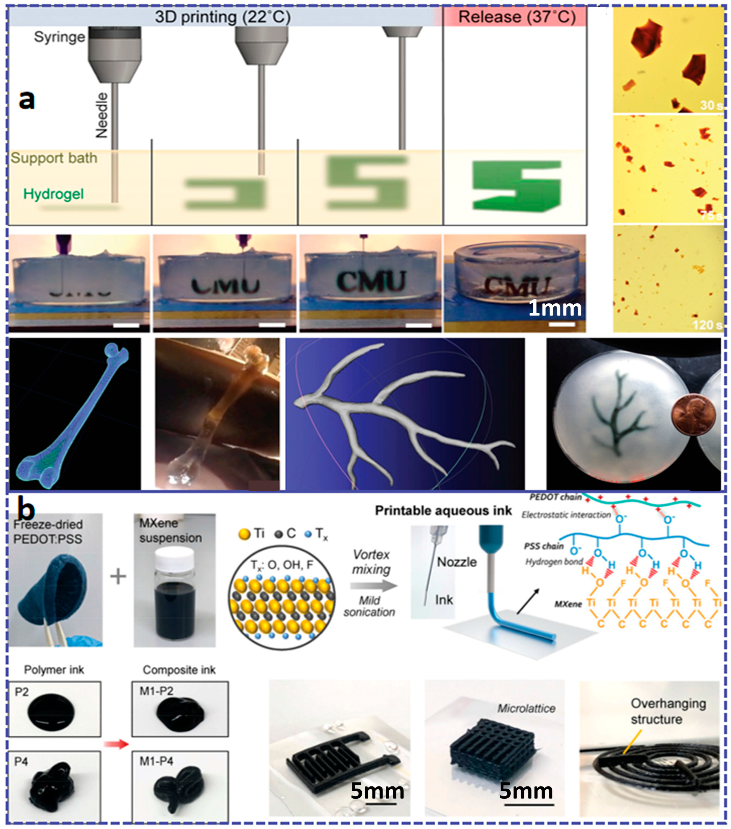 - Liu, H.; Du, C.; Liao, L.; Zhang, H.; Zhou, H.; Zhou, W.; Ren, T.; Sun, Z.; Lu, Y.; Nie, Z.; et al. Approaching intrinsic dynamics of MXenes hybrid hydrogel for 3D printed multimodal intelligent devices with ultrahigh superelasticity and temperature sensitivity. Nat. Commun. 2022, 13, 3420. [Google Scholar] [CrossRef]