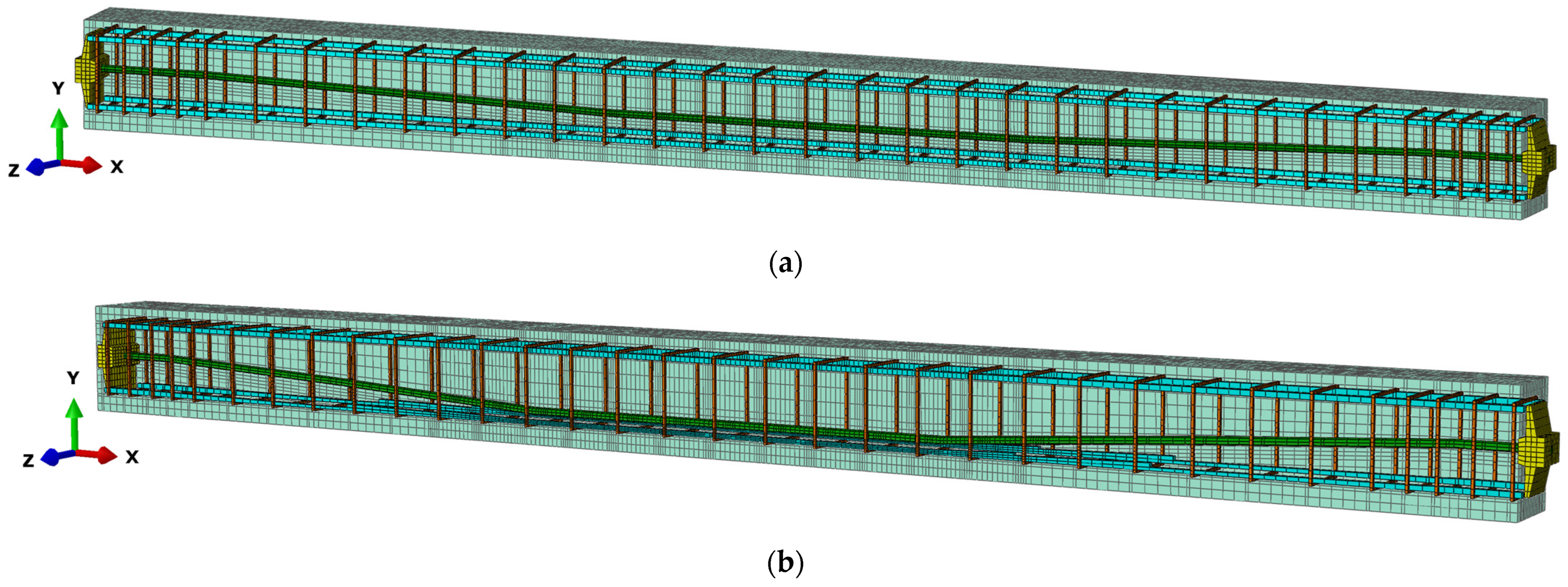 - Brenkus, N.R.; Tatar, J.; Hamilton, H.R.; Consolazio, G.R. Simplified finite element modelling of post-tensioned concrete members with mixed bonded and unbonded tendons. Eng. Struct. 2019, 179, 387–397. [Google Scholar] [CrossRef]