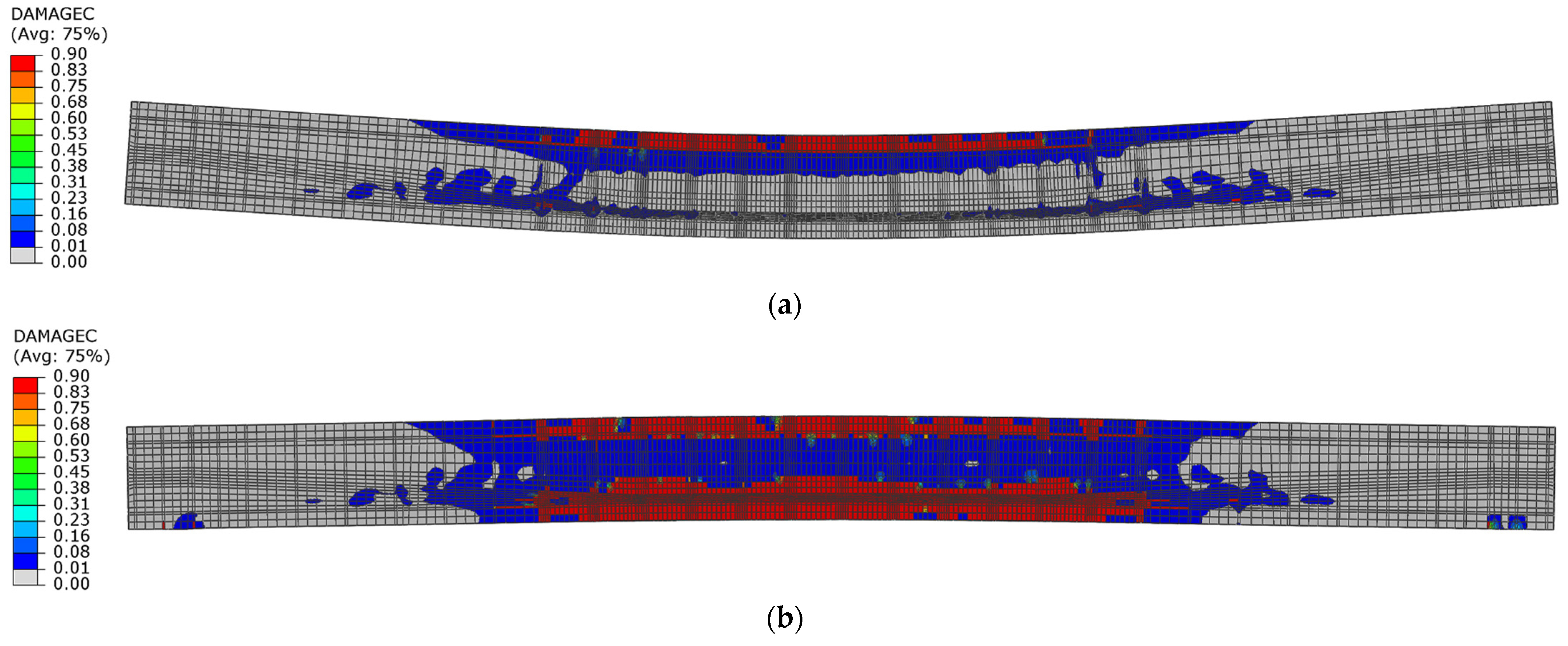 - Yu, T.; Teng, J.G.; Wong, Y.L.; Dong, S.L. Finite element modeling of confined concrete-II: Plastic-damage model. Eng. Struct. 2010, 32, 680–691. [Google Scholar] [CrossRef]
