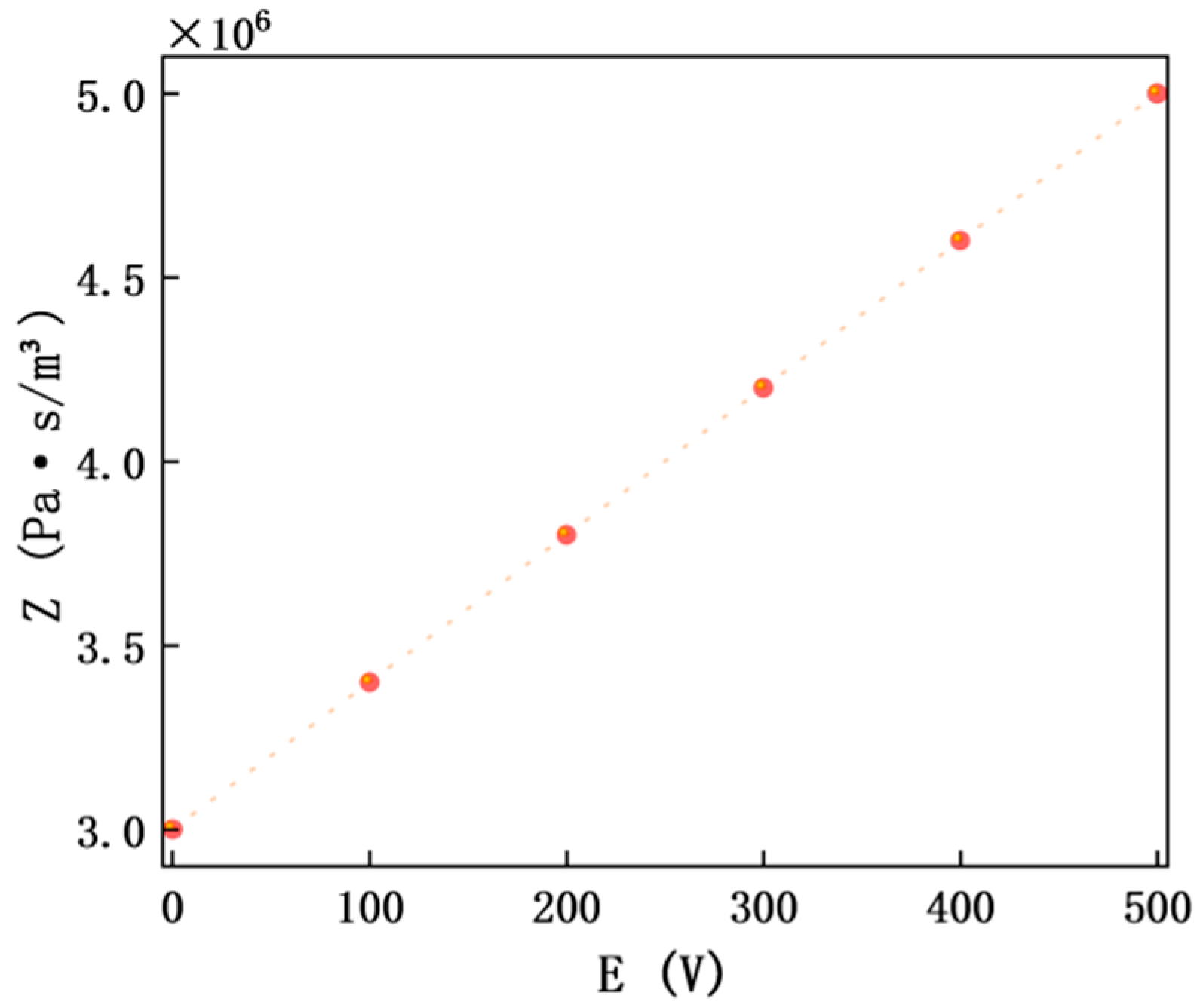 E (0–500 V), and the ordinate is acoustic impedance