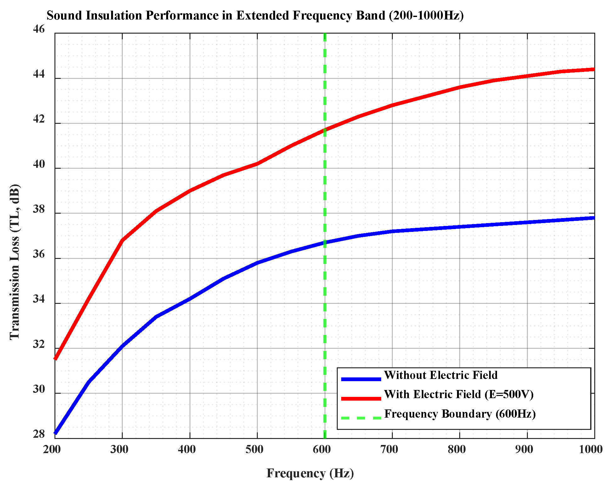 TL is improved by 3–5 dB under electric field regulation, demonstrating a significant active control effect; and 2. in the extended frequency band (600–1000 Hz), the