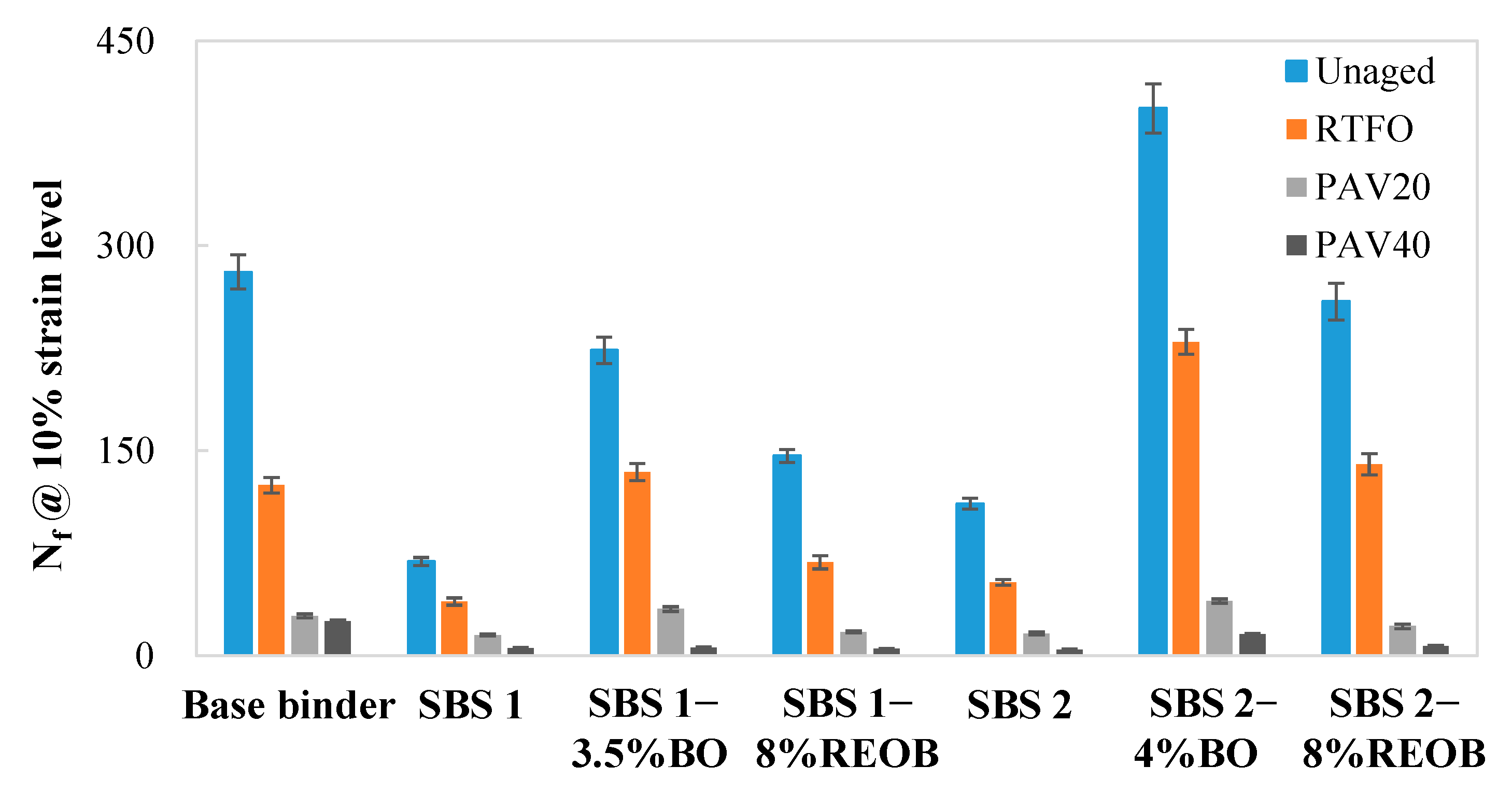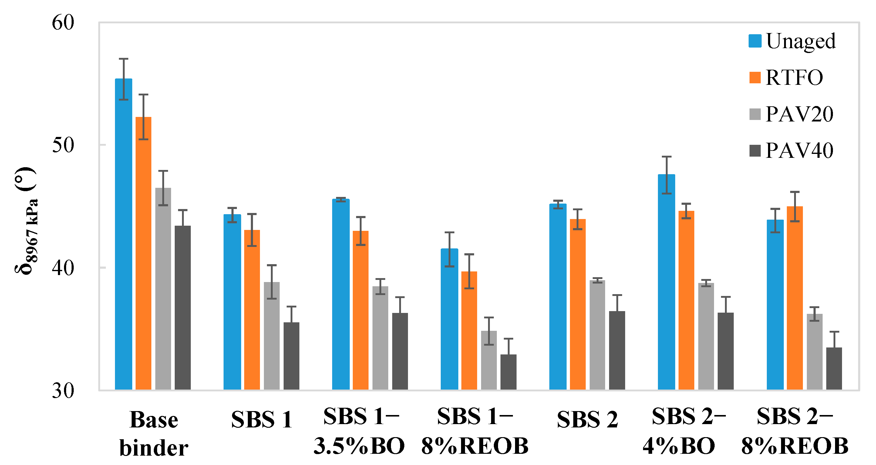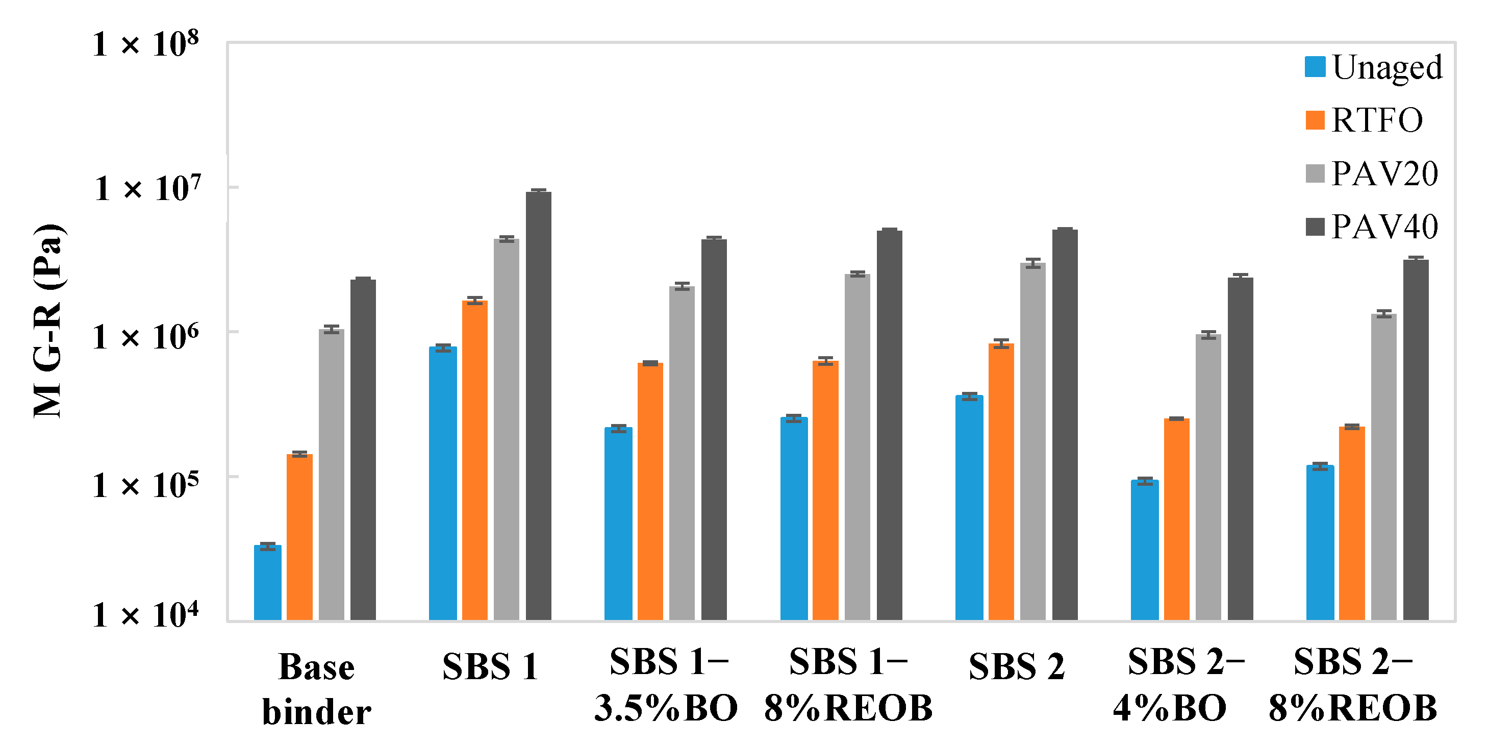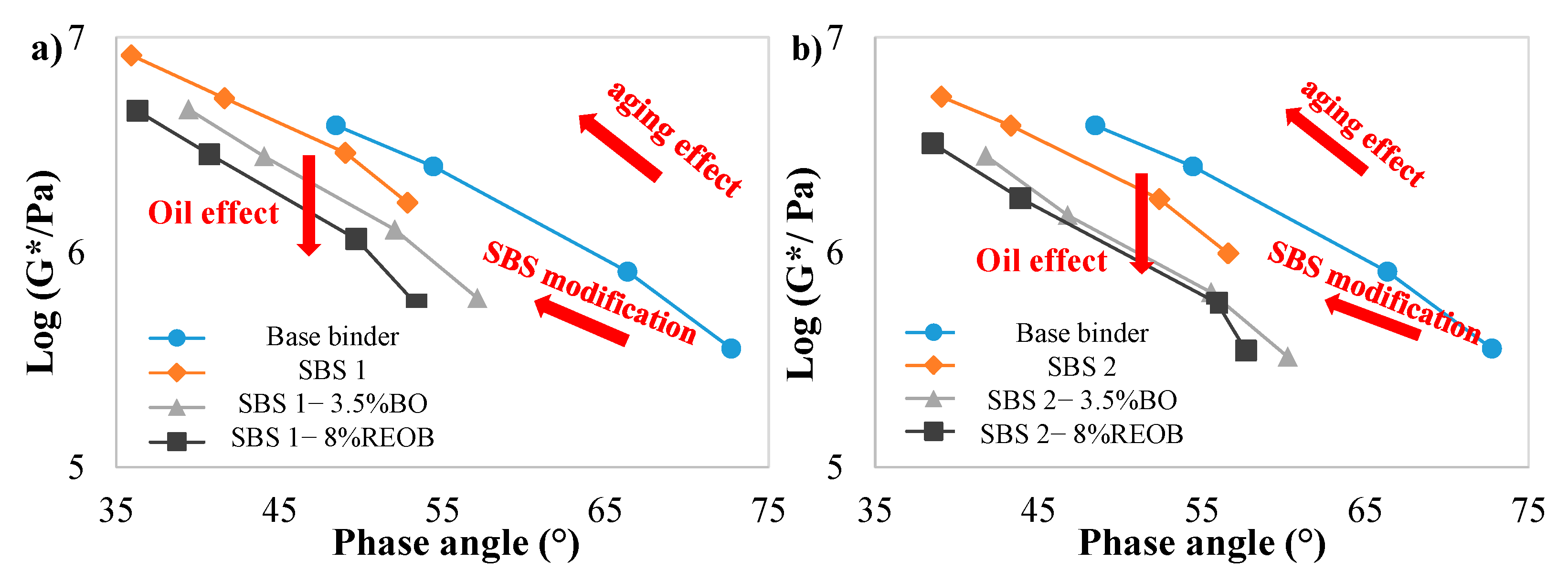 - Kilger, A.; Swiert, D.; Bahia, H. Long-Term Aging Performance Analysis of Oil Modified Asphalt Binders. Transp. Res. Rec. 2019, 2673, 404–412. [Google Scholar] [CrossRef]