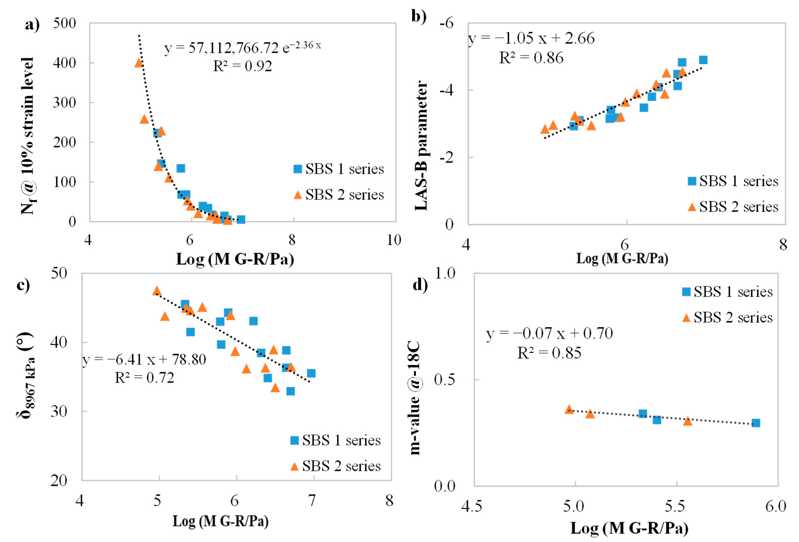- Liu, J.; Liu, J.; Saboundjian, S. Evaluation of cracking susceptibility of Alaskan polymer modified asphalt binders using chemical and rheological indices. Constr. Build. Mater. 2021, 271, 121897. [Google Scholar] [CrossRef]
