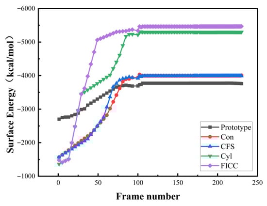 In this study, interfacial energy was analyzed and calculated through MD simulations, with the total potential energy of the system determined using Equation (2).
