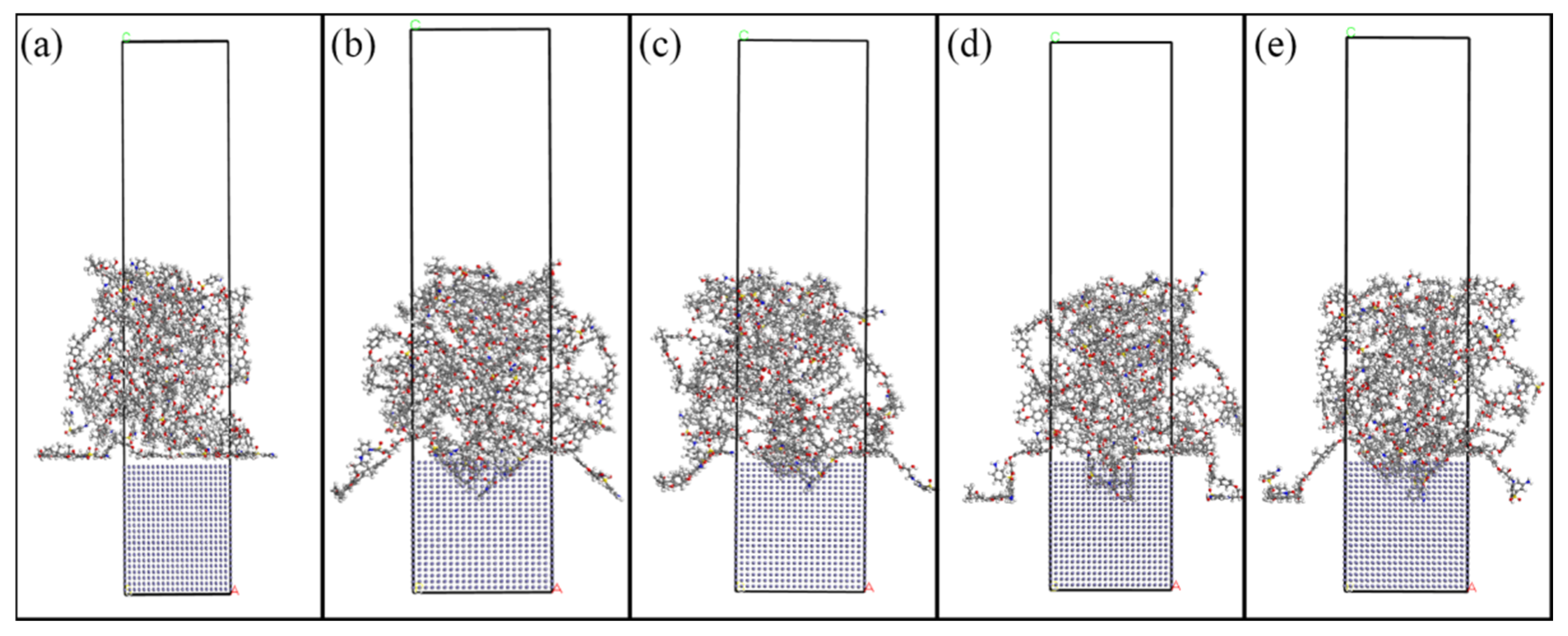- Arab, B.; Shokuhfar, A. Molecular dynamics simulation of cross-linked epoxy polymers: The effect of force field on the estimation of properties. Nano-Electron. Phys. 2013, 5, 01013. [Google Scholar]