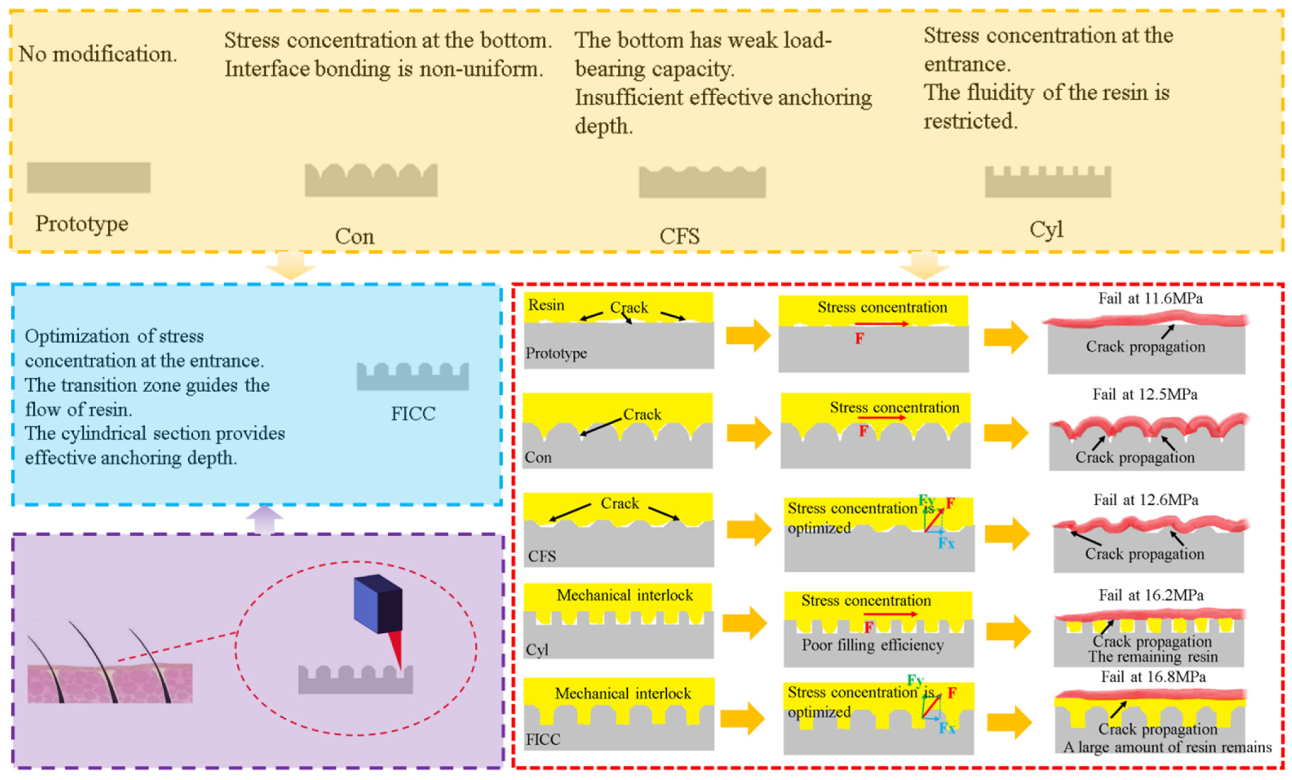 Chicago/Turabian StyleHe, Longfei, Lianhai Wang, Guorong Cui, Wencong Zhang, Mengkai Chen, Jiabin Hou, and Chao Cui. 2025. "Bioinspired Microcavities Enhancing the Interface of Fe–Carbon Fiber-Reinforced Polymer" Materials 18, no. 23: 5444. https://doi.org/10.3390/ma18235444