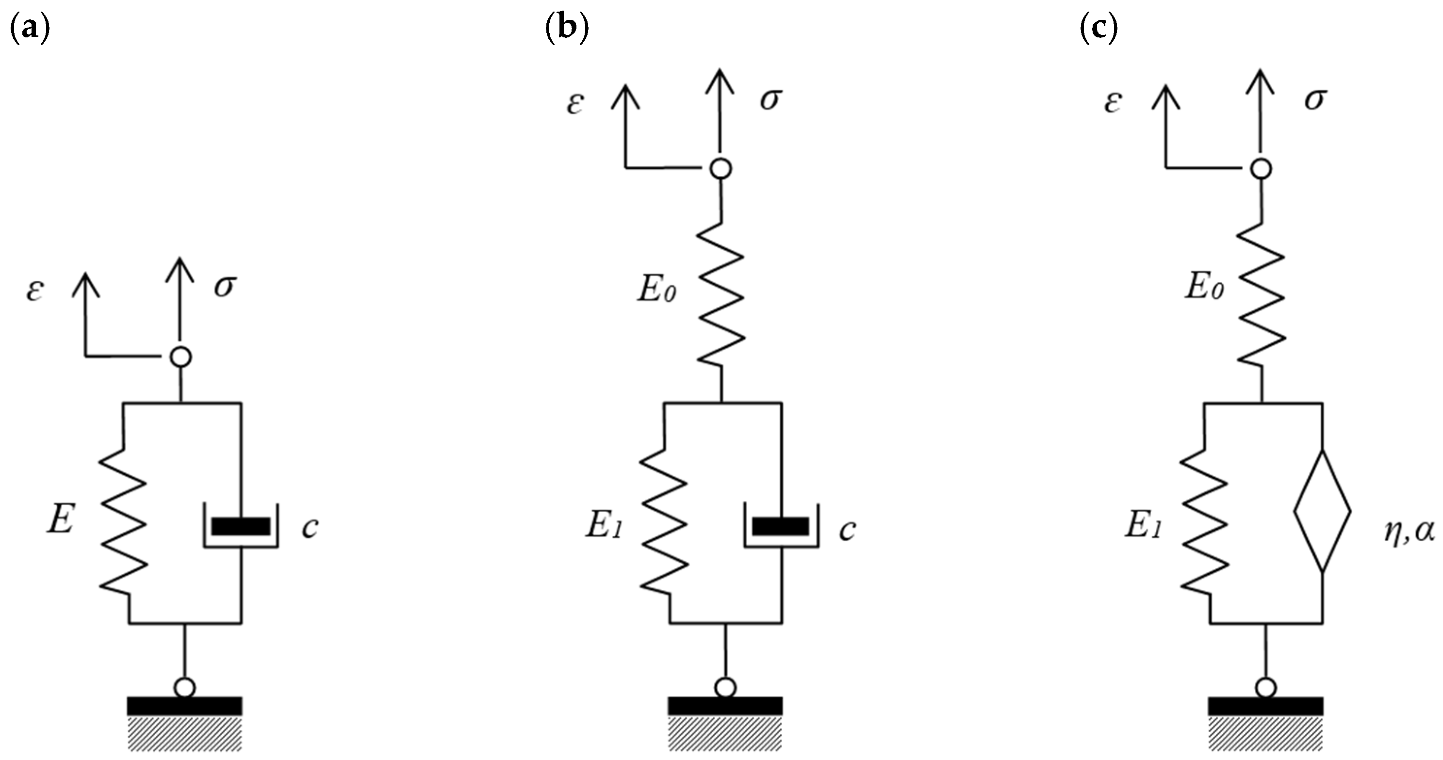 12], which is constructed by connecting several Kelvin–Voigt branches in series. The use of generalized Maxwell or Kelvin–Voigt mechanical models requires determining numerous rheological parameters (spring and dashpot stiffness moduli) by fitting complex curve-fitting algorithms to experimental creep, relaxation, or hysteresis data.