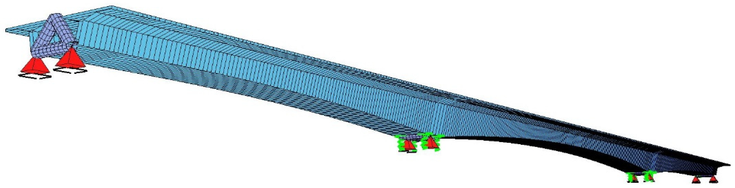 4.5. Stress State of the Bridge Structure