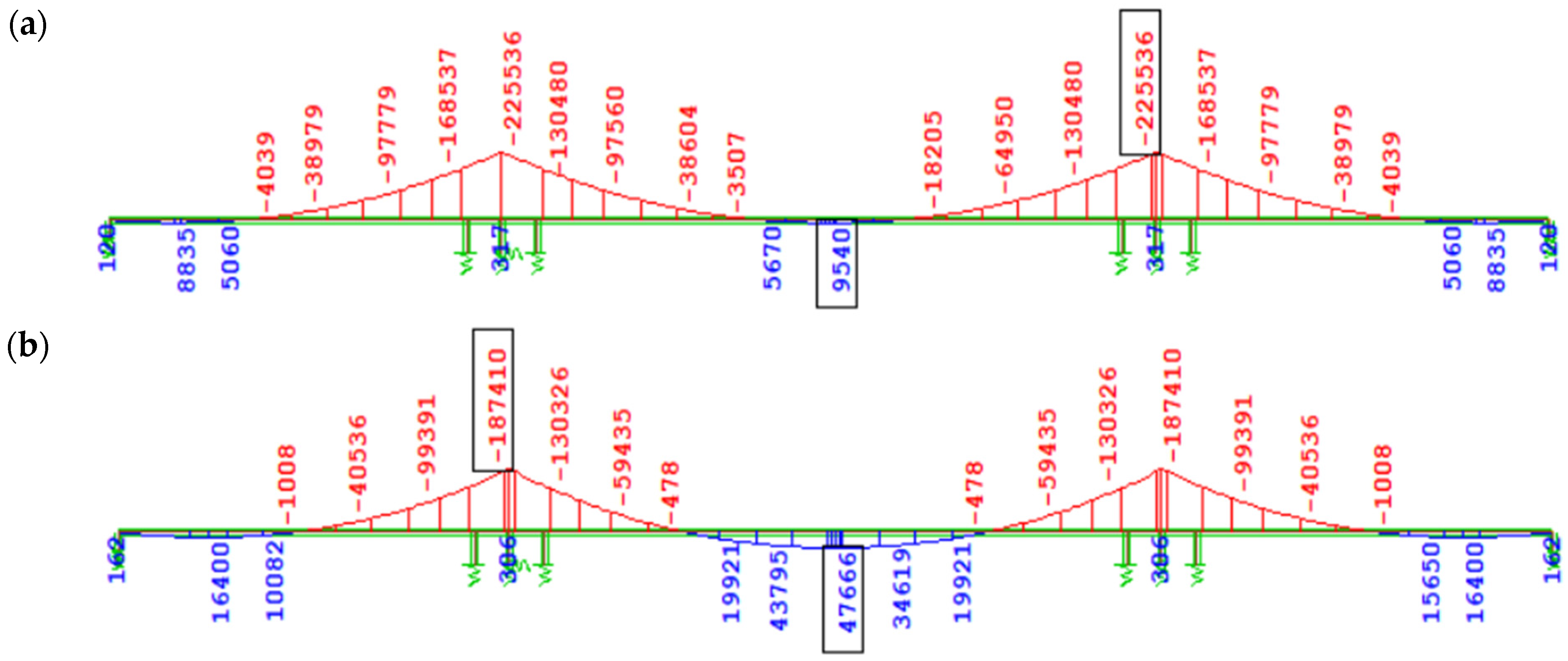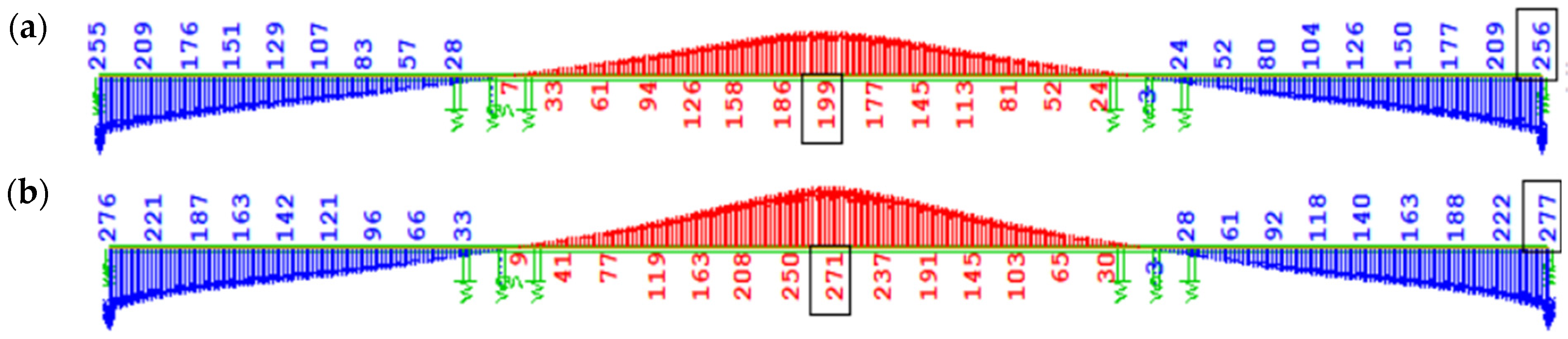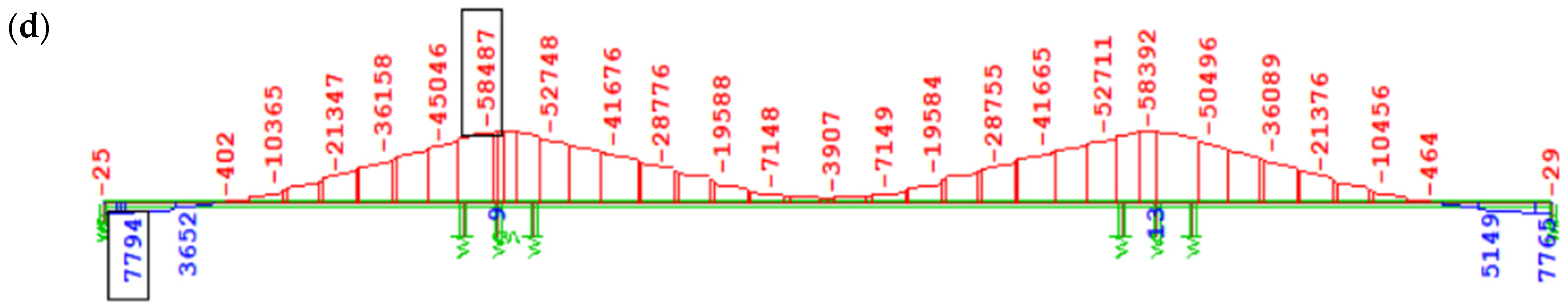 Figure 12 shows the bending moment diagram My due to self-weight immediately after full continuity of the structure (