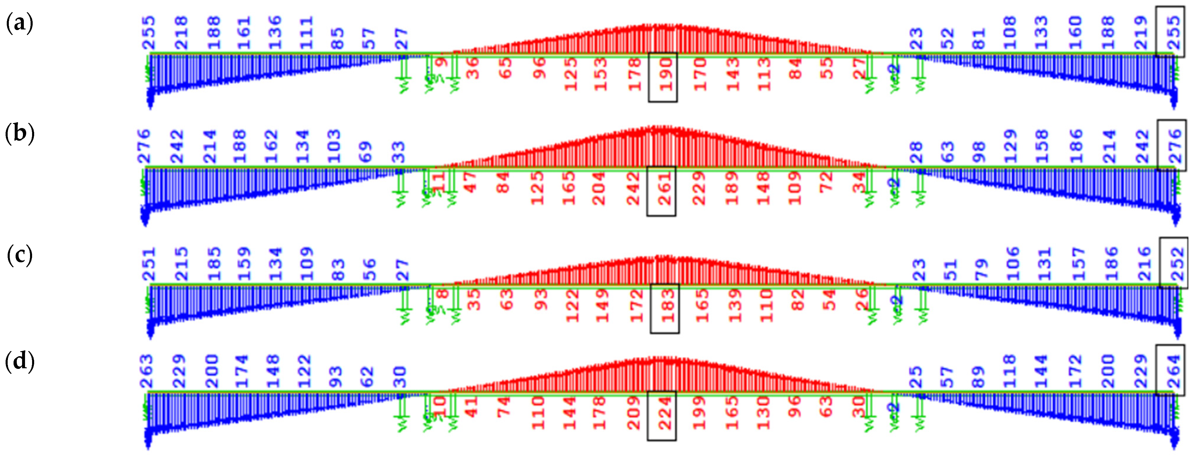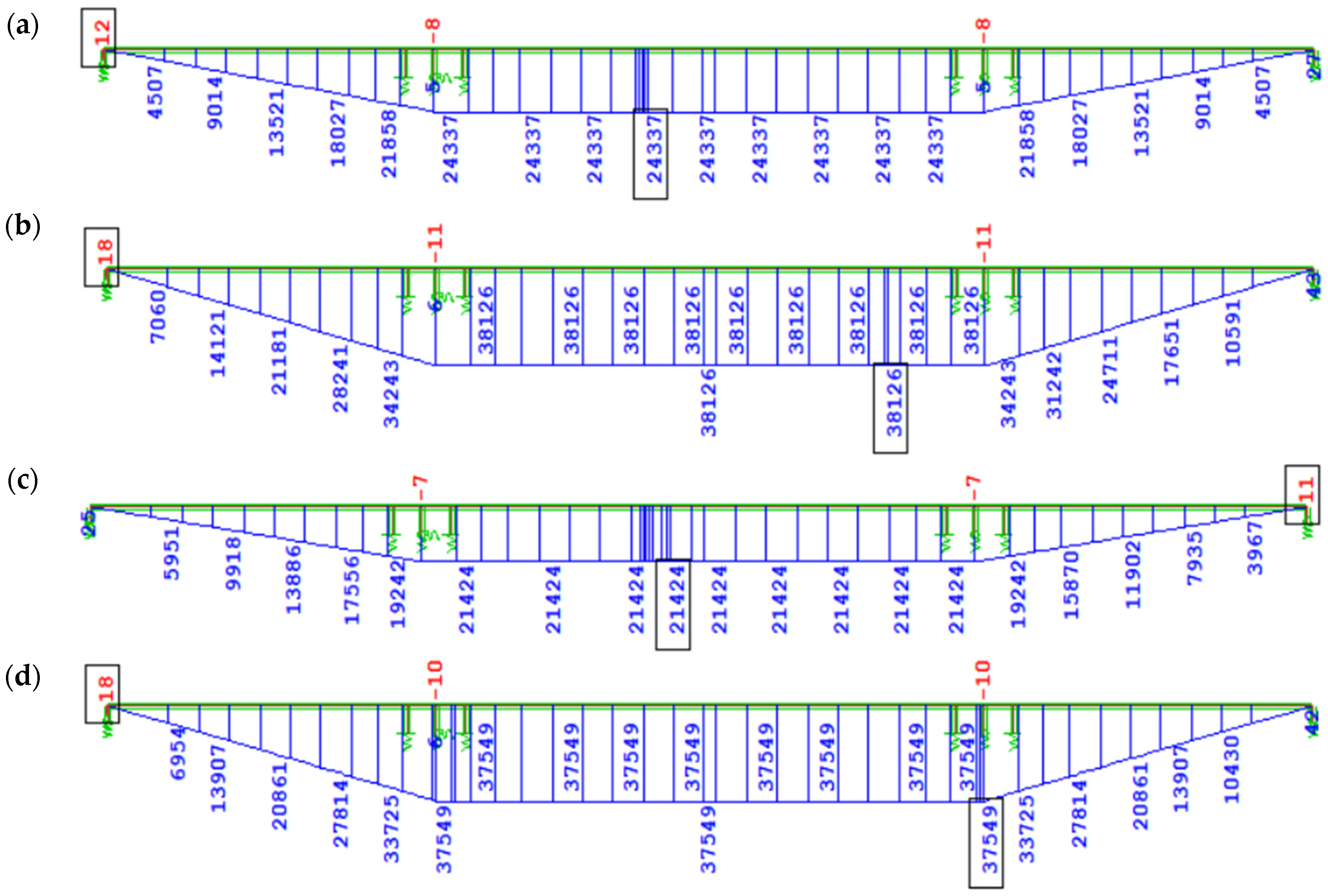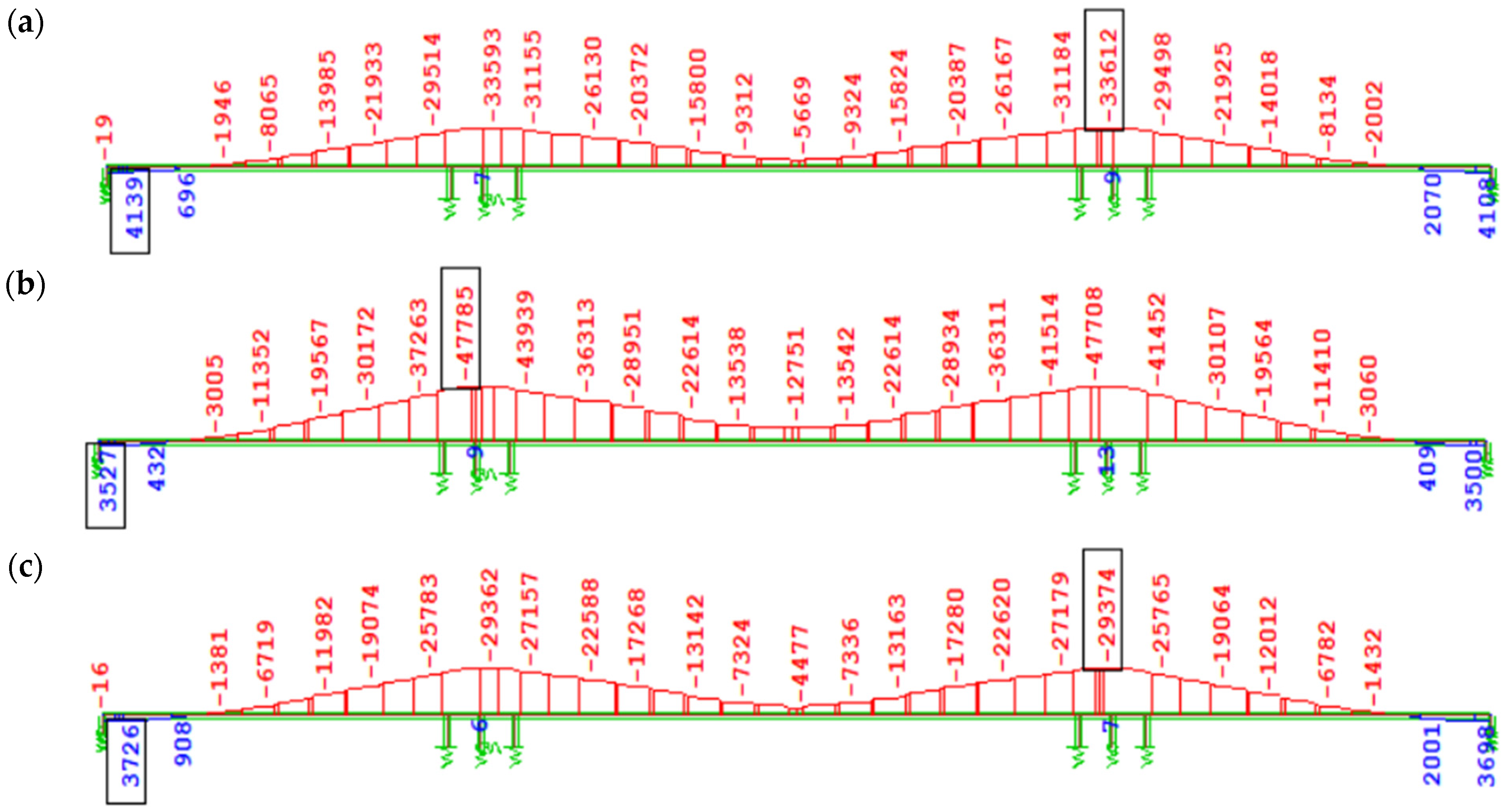 Figure 12 shows the bending moment diagram My due to self-weight immediately after full continuity of the structure (