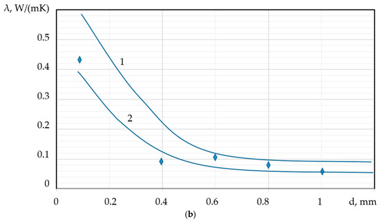 It is generally accepted [15,16] that the primary factors influencing thermal conductivity are moisture content, temperature difference, and bulk density/porosity. While various publications have summarized this relationship, the effective thermal conductivity of materials is also fundamentally determined by structural parameters [17,18]. Specifically, refs. [19,20] conducted a comprehensive assessment of how the shape, distribution, and overlap of the porous structure affect thermal conductivity. Their findings established that pores possessing the largest contact area, irrespective of the porosity type, significantly influence the functional properties of the materials.
