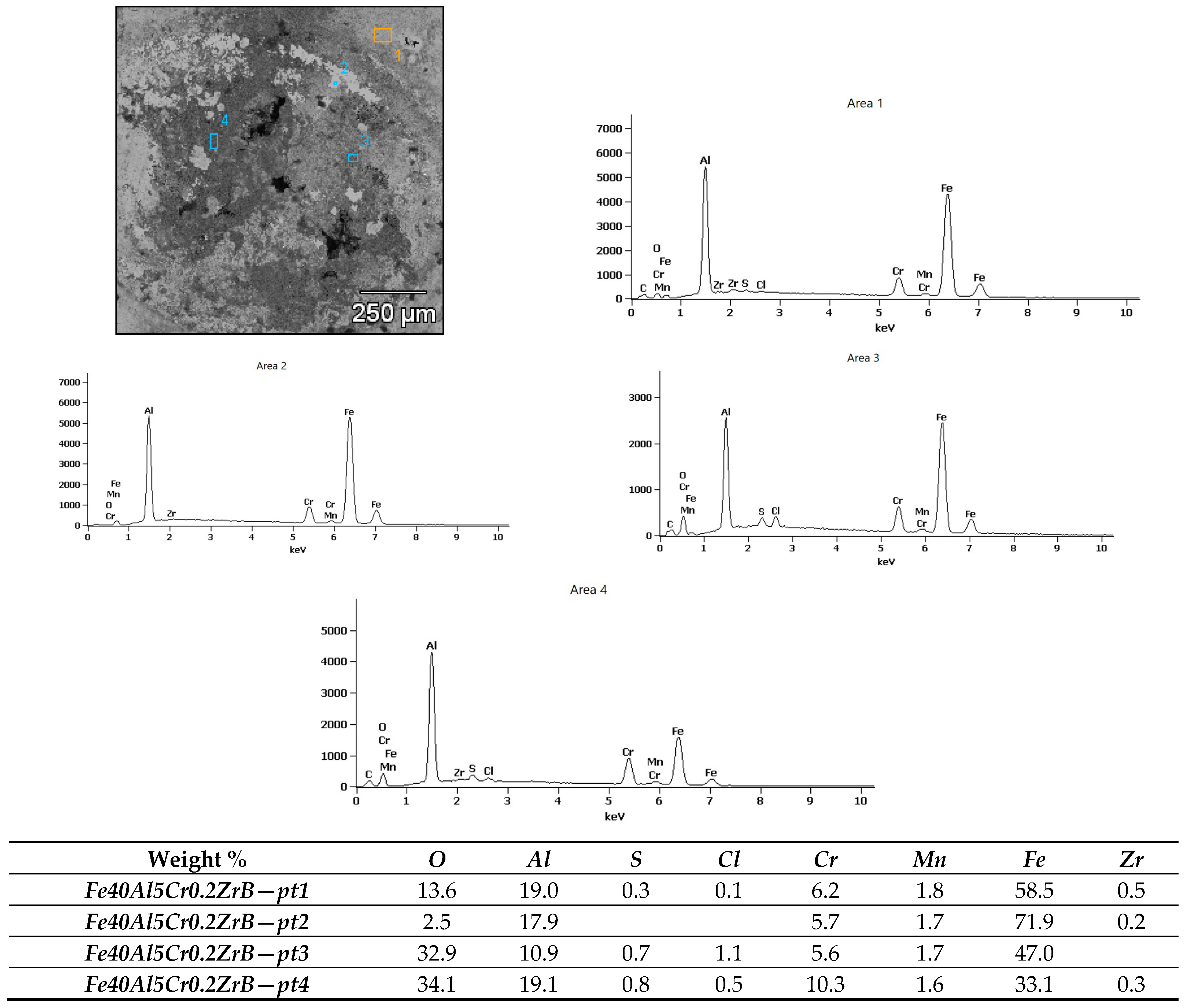 | Compound | Fe | Al | Cr | Zr | B |
