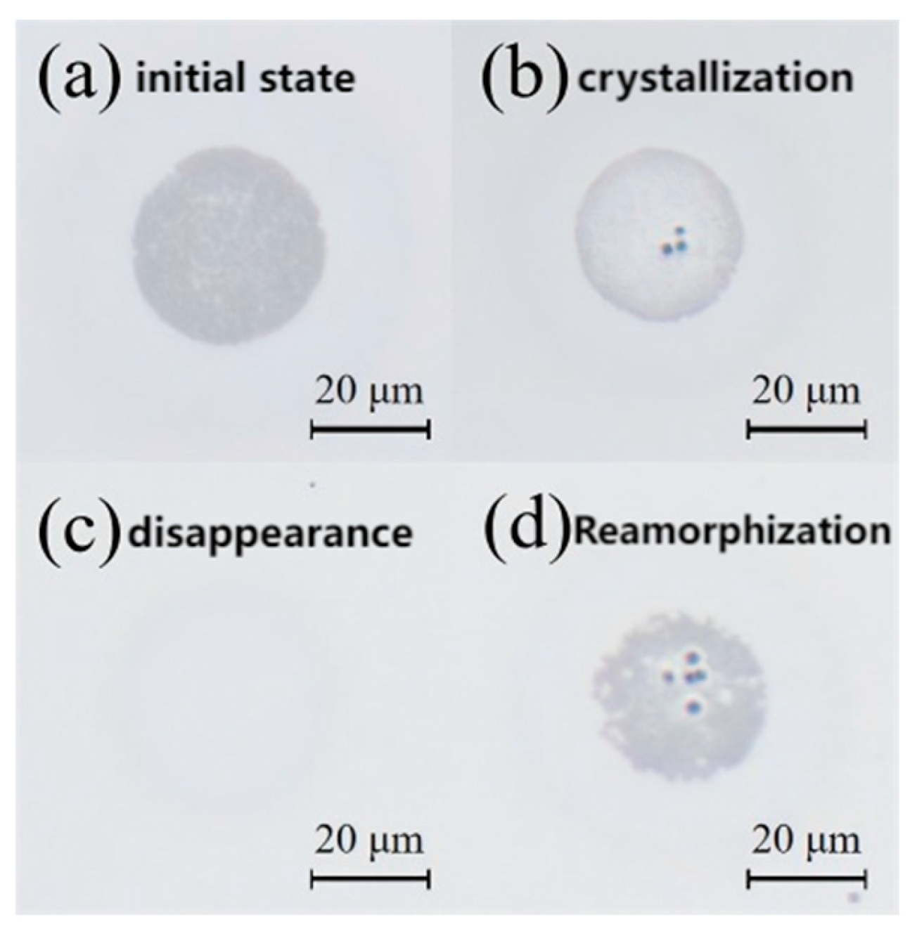 - Initial state: When there is no pulse excitation or the pulse energy is lower than 8.5 mJ/cm2, the original amorphous state is maintained.