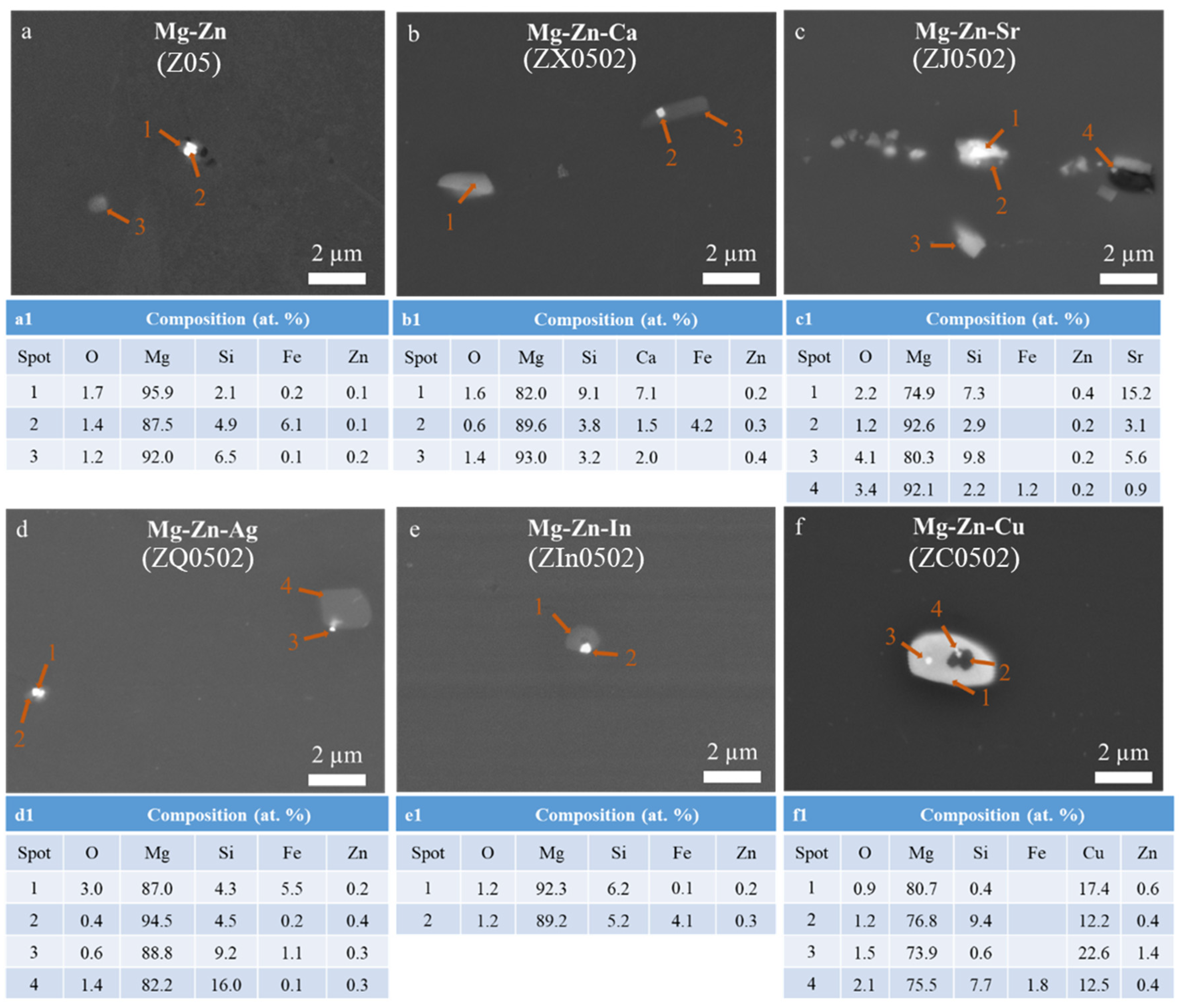 | Z0502-Sr | MgSrSi(Zn), SiSr2(Zn) | MgSrSi, Si2Sr | MgSrSi(Fe), Si2Sr(Fe) |
