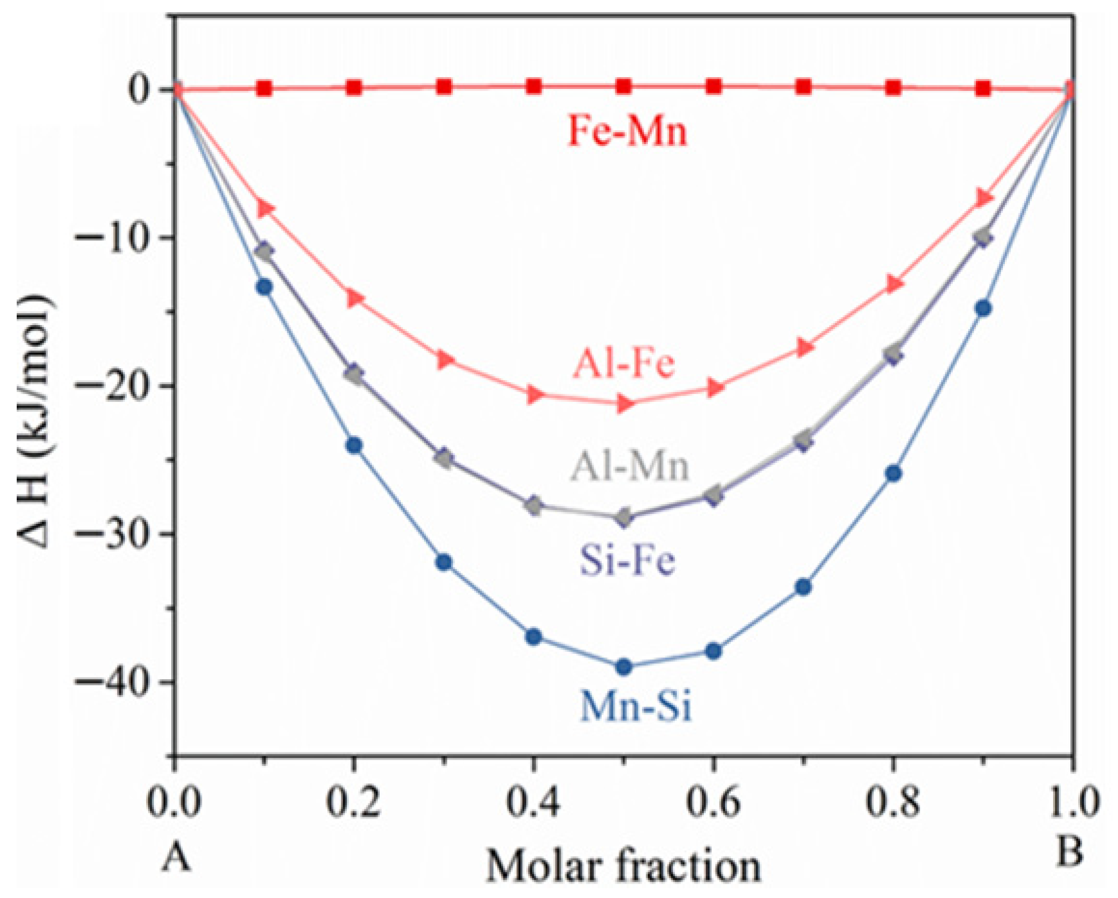 - Ding, X.; Fan, P.; Han, Q. Models of activity and activity interaction parameter in ternary metallic melt. Acta Metall. Sin. 1994, 30, 49–60. [Google Scholar]
