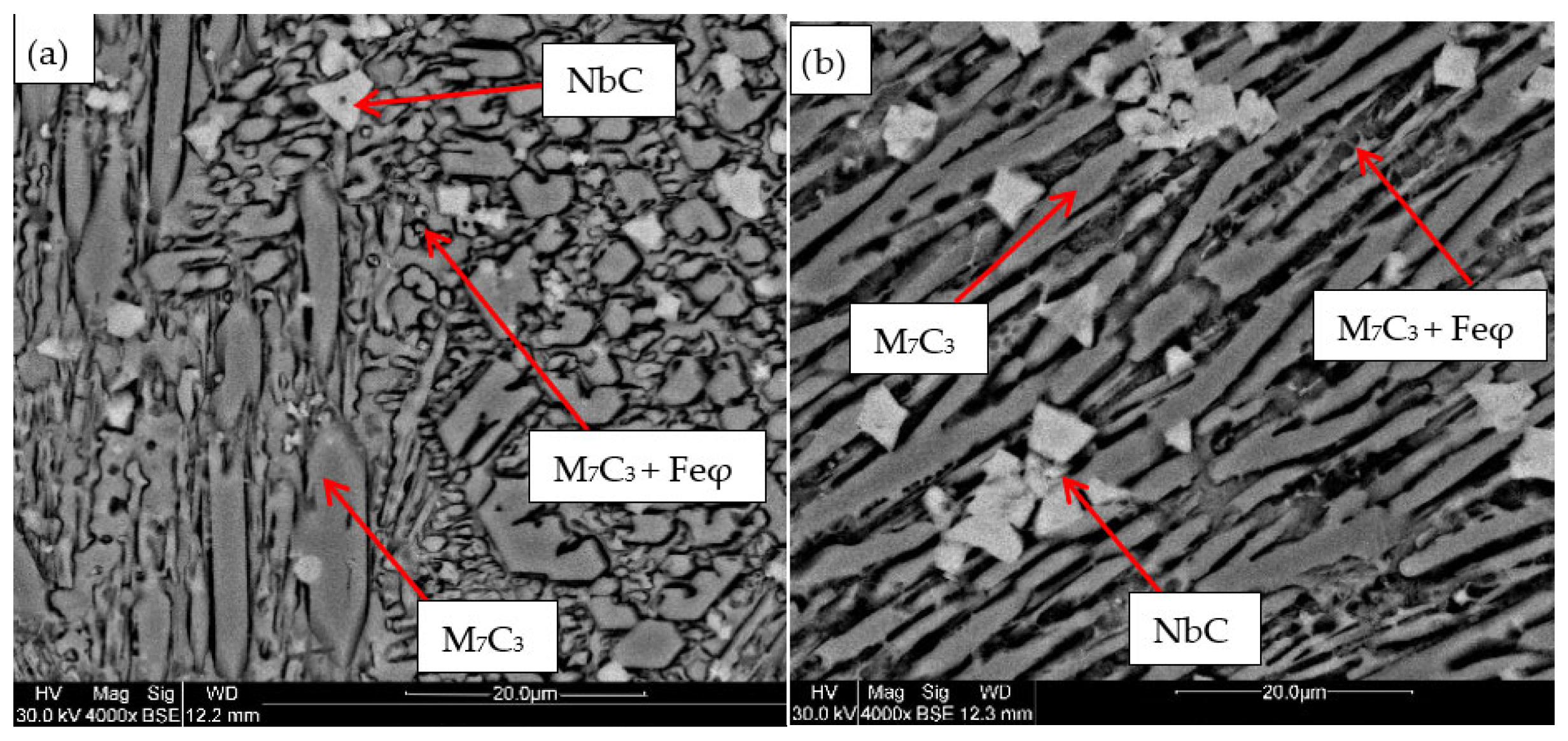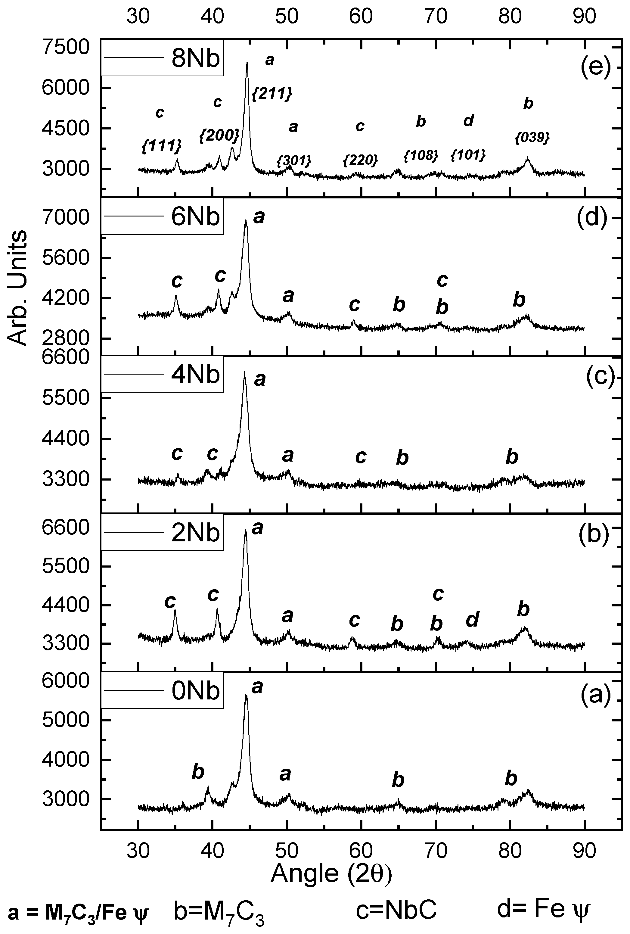 3 carbides, contributing to high hardness and moderate toughness. More recently, niobium additions have gained attention due to their ability to refine microstructures, stabilize carbides at elevated temperatures, and limit the formation of coarse primary carbides, which may otherwise serve as crack initiation sites [