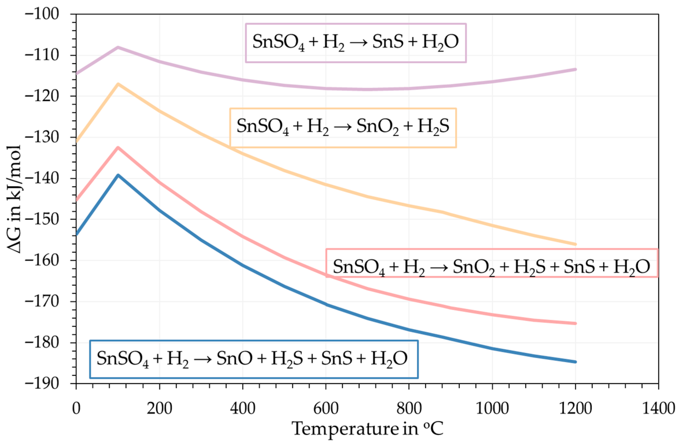 Gibbs free energy change in expected reactions taking place.