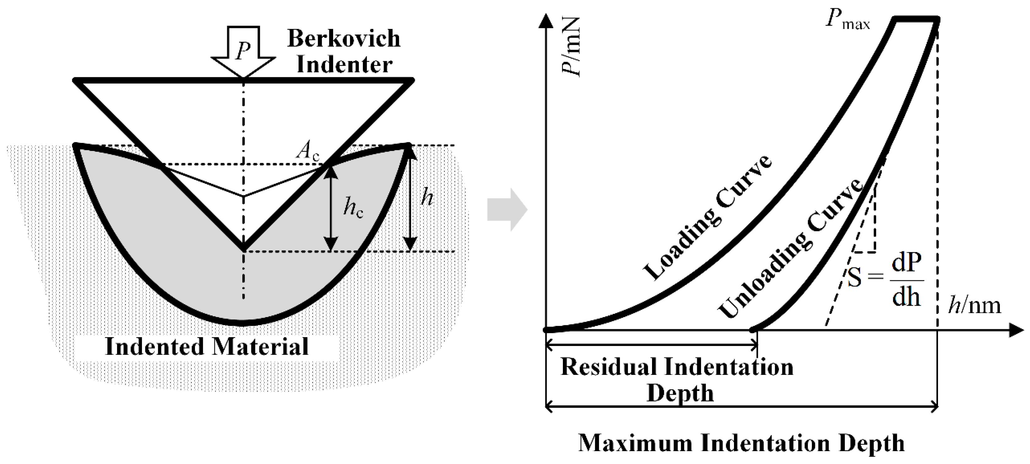 - Fischer-Cripps, A.C. Critical review of analysis and interpretation of nanoindentation test data. Surf. Coat. Technol. 2006, 200, 4153–4165. [Google Scholar] [CrossRef]