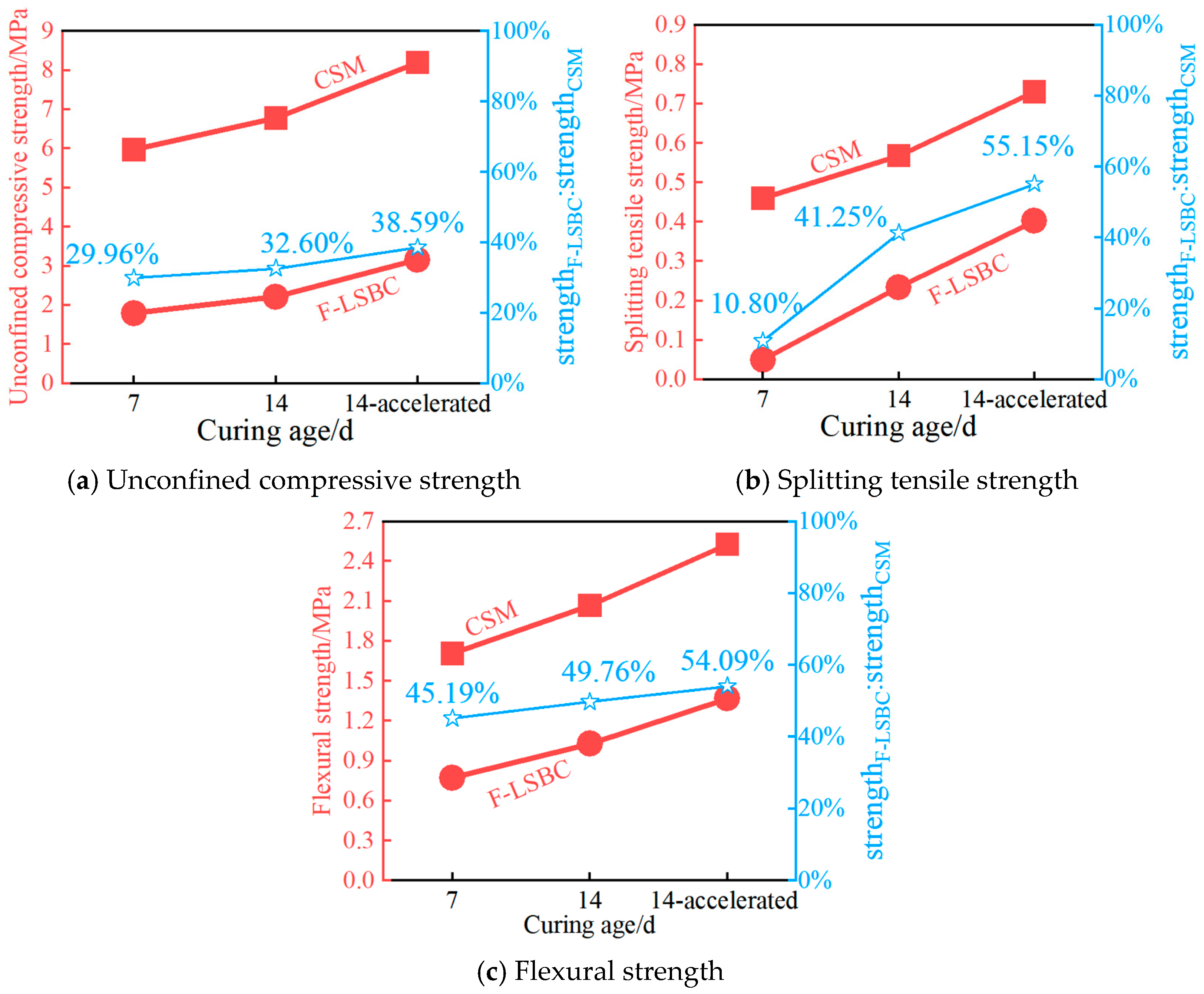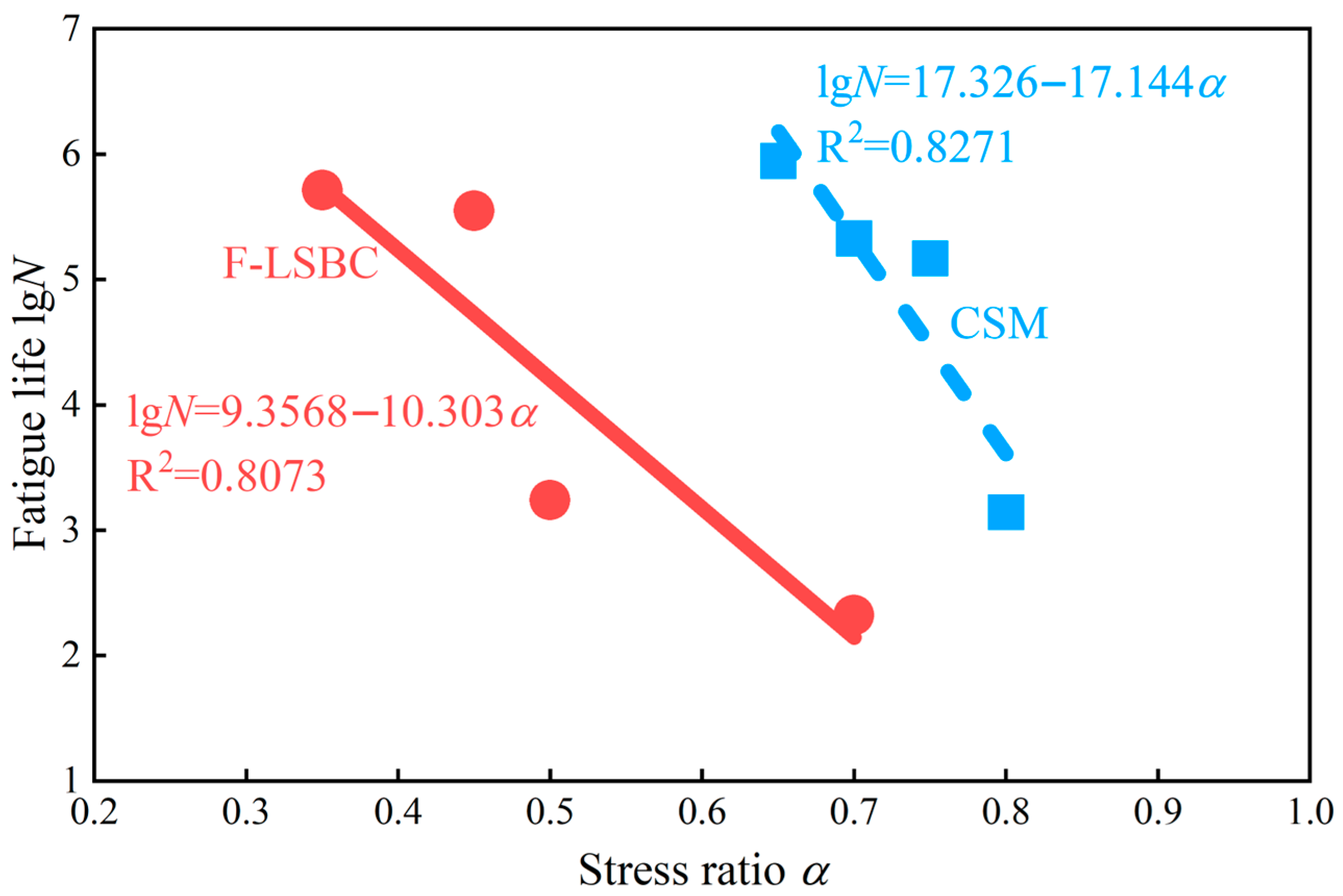 - Due to ITZ deterioration, F-LSBC demonstrates markedly reduced compressive, tensile, and flexural strength, as well as shortened fatigue life, in comparison to CSM. This study quantitatively links ITZ properties with macroscopic mechanical behavior, offering a mechanistic understanding of performance loss.