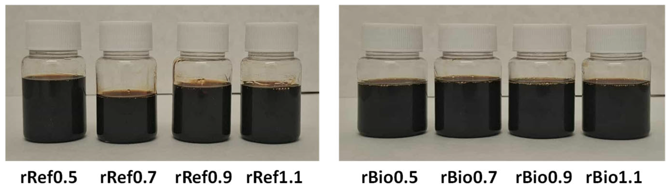 | Component | Ref1.1 | Ref0.9 | Ref0.7 | Ref0.5 | Bio1.1 | Bio0.9 | Bio0.7 | Bio0.5 |