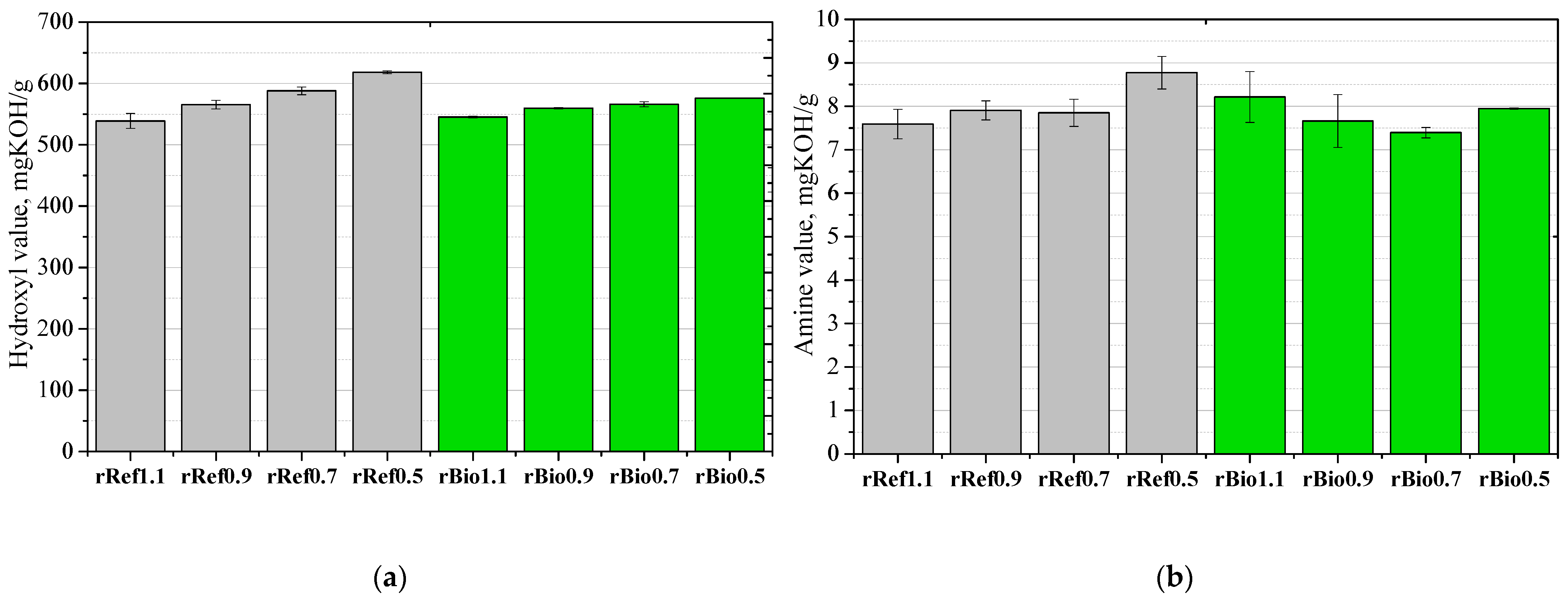 - PN-93/C-89052/03; Polietery Do Poliuretanów–Metody Badań–Oznaczanie Liczby Hydroksylowej. Polski Komitet Normalizacyjny: Warszawa, Polska, 1993.