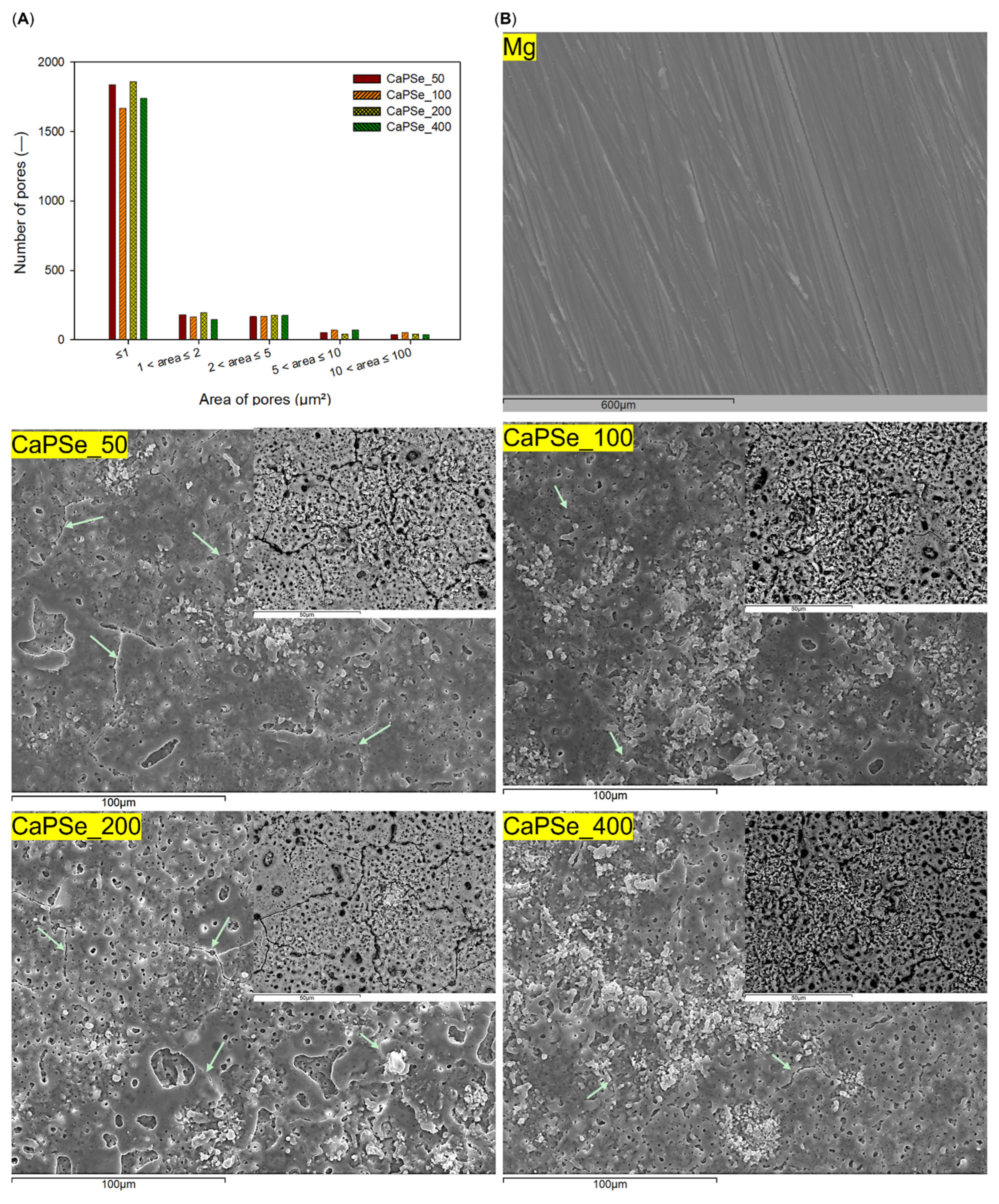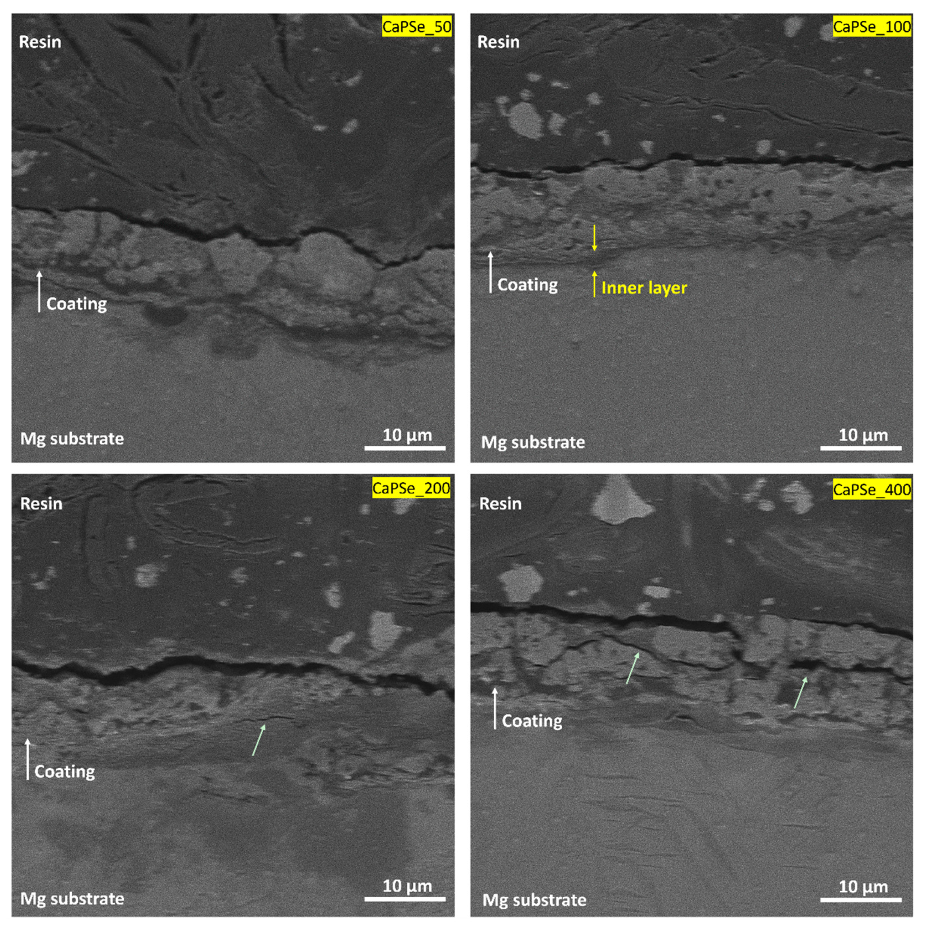 - CaPSe_100 coating showed the most uniform structure and highest porosity (28.4%).