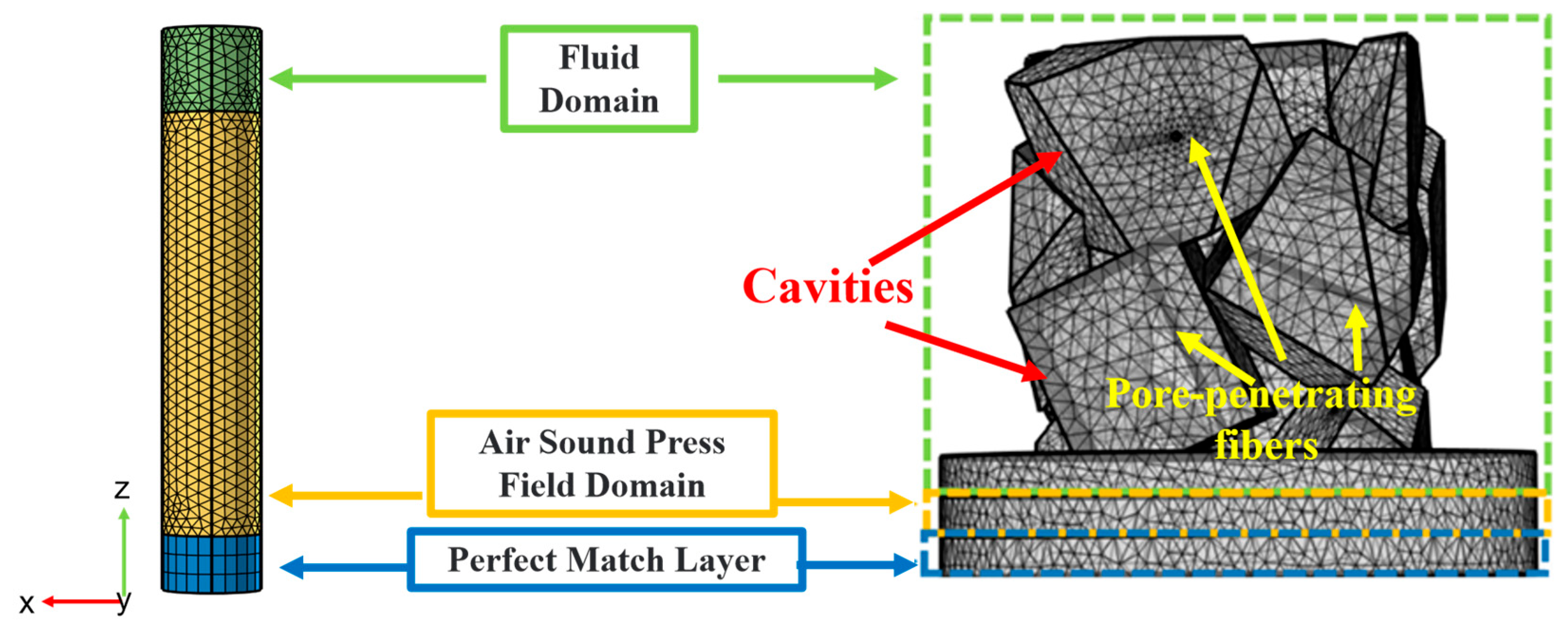 - Otaru, A.J.; Morvan, H.P.; Kennedy, A.R. Numerical Modelling of the Sound Absorption Spectra for Bottleneck Dominated Porous Metallic Structures. Appl. Acoust. 2019, 151, 164–171. [Google Scholar] [CrossRef]