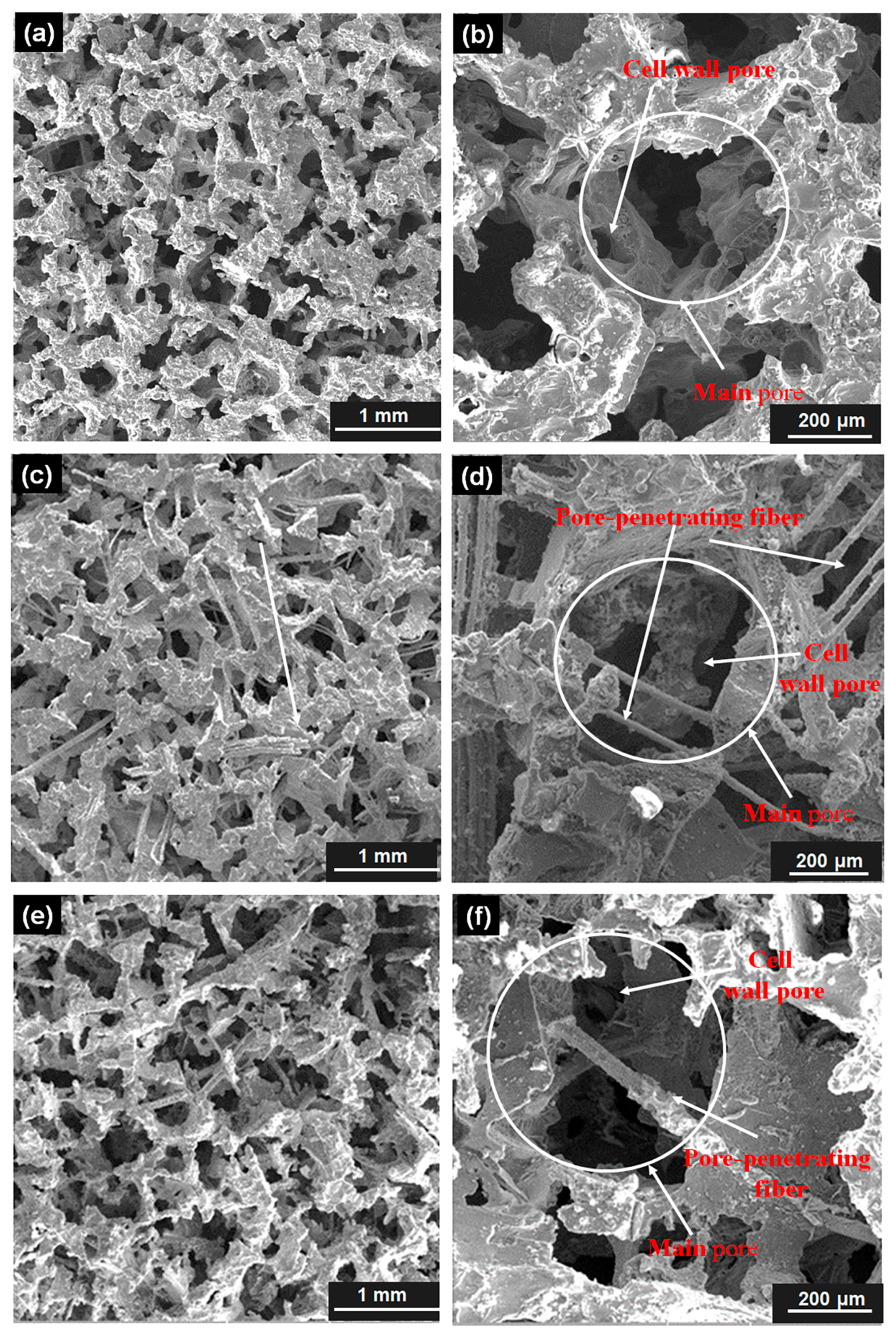 3.1.1. Influence of Pore-Penetrating Fibers on Pore Structure