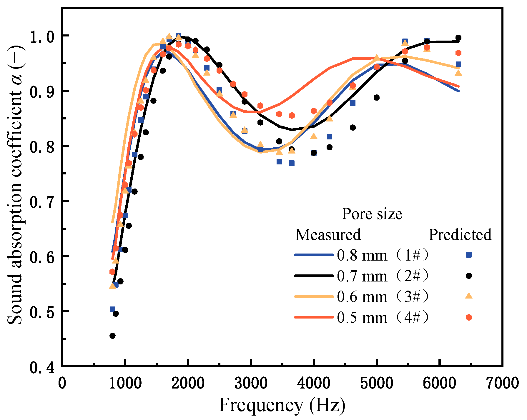 3.2.1. Effect of Pore-Penetrating Fibers on Sound Absorption Curves