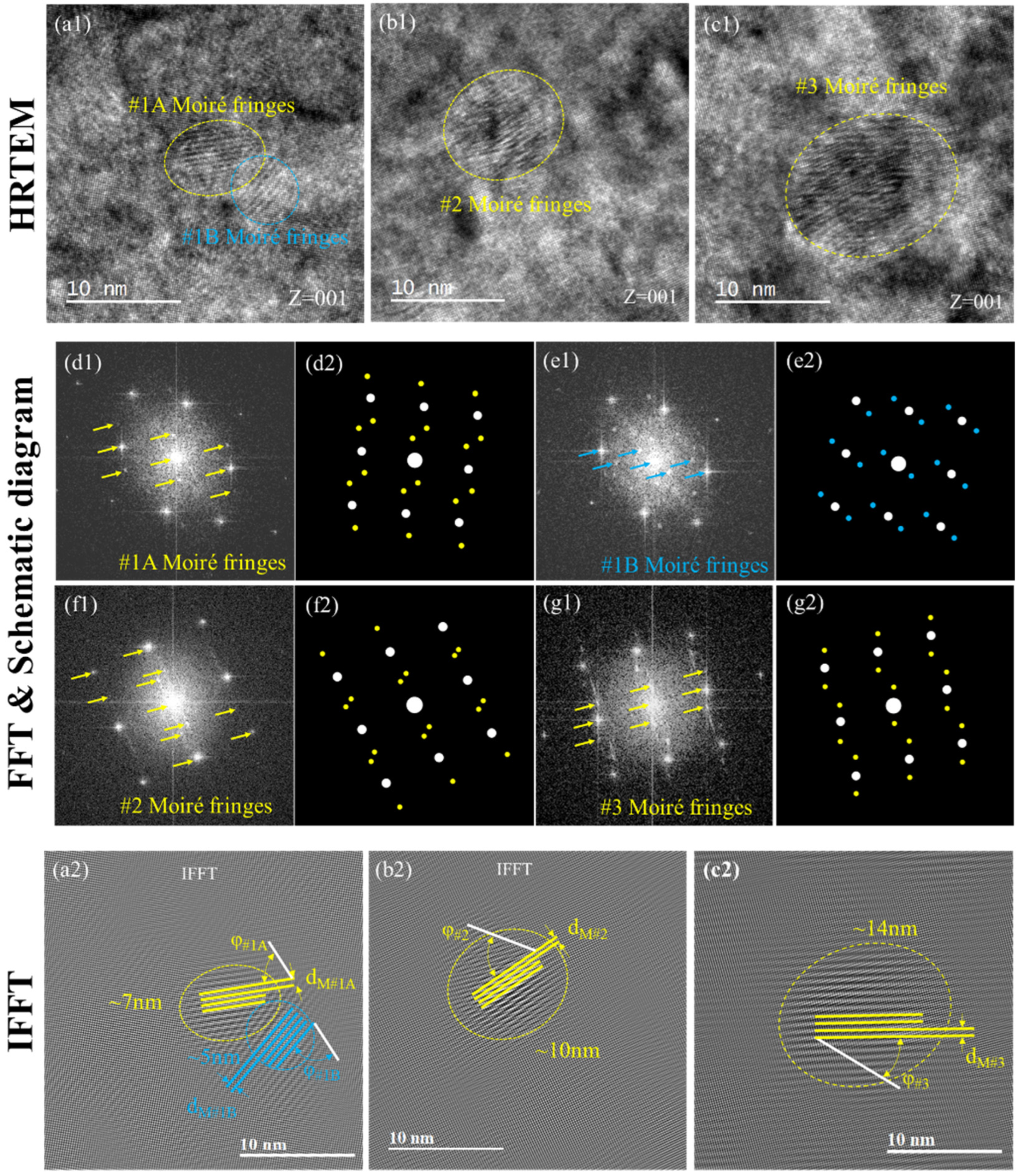 - The Moiré fringes formation is attributed to the twisted effect between precipitates’ low index crystal planes overlapped with the BCC matrix at various angles.