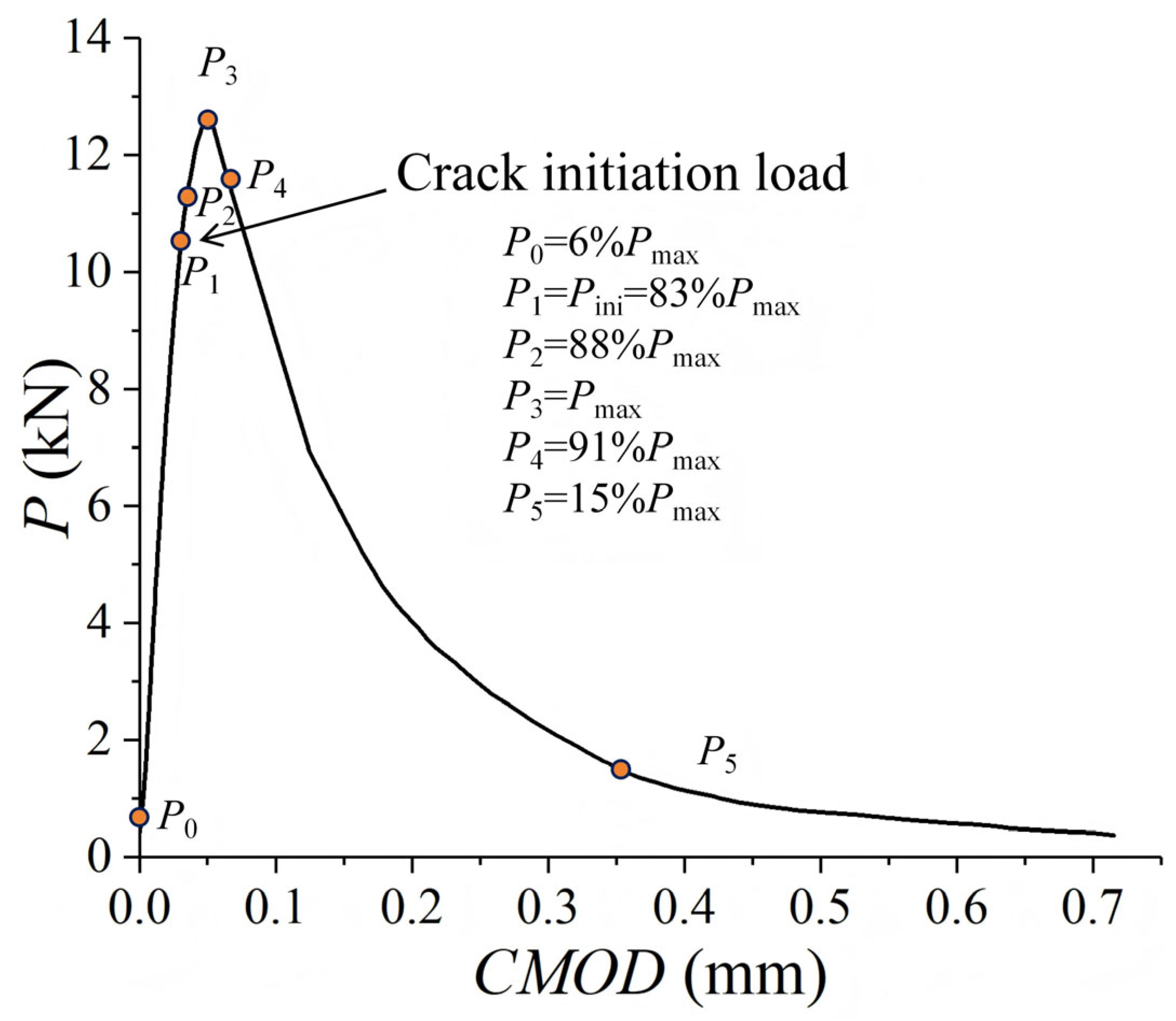 - Stage II: From Pini to Pmax, representing the stable crack propagation
