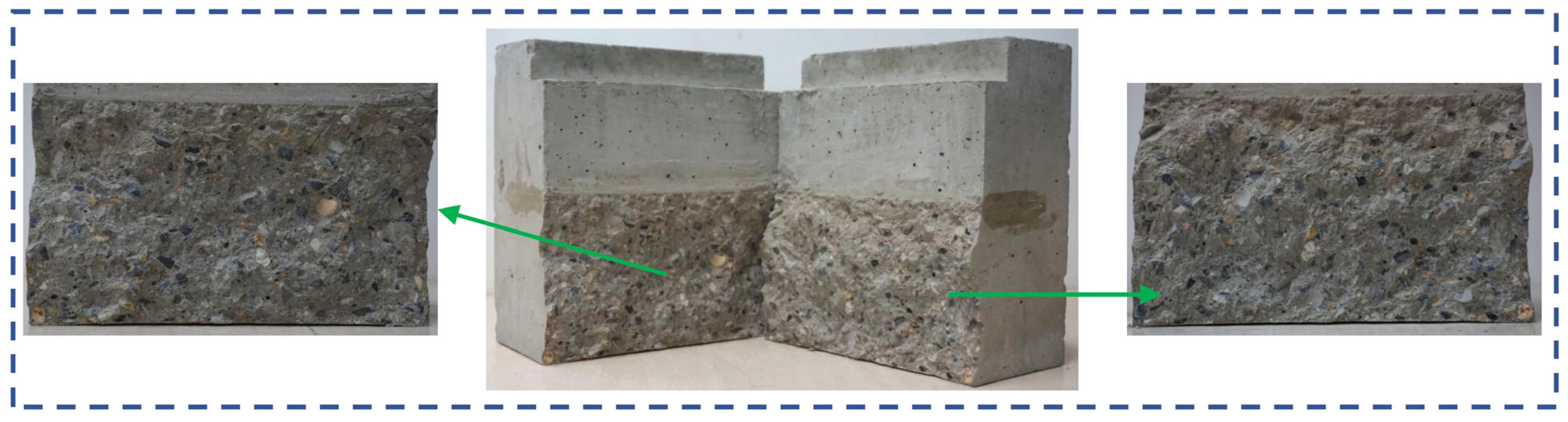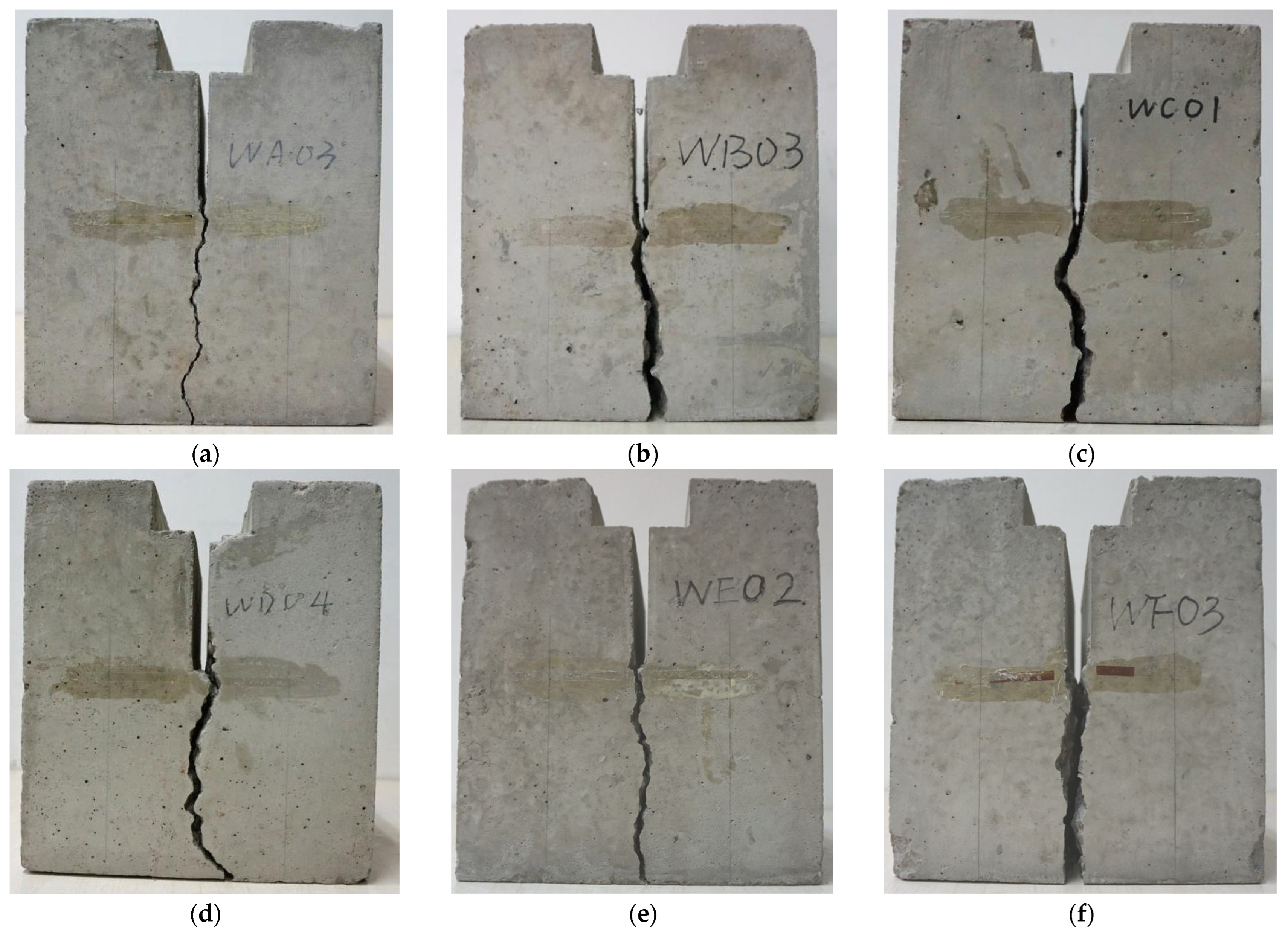 - Chen, Y.; Feng, J. Experimental Study On Effect of Coarse Aggregate Volume Fraction On Mode I and Mode II Fracture Behavior of Concrete. J. Adv. Concr. Technol. 2022, 20, 57–71. [Google Scholar] [CrossRef]