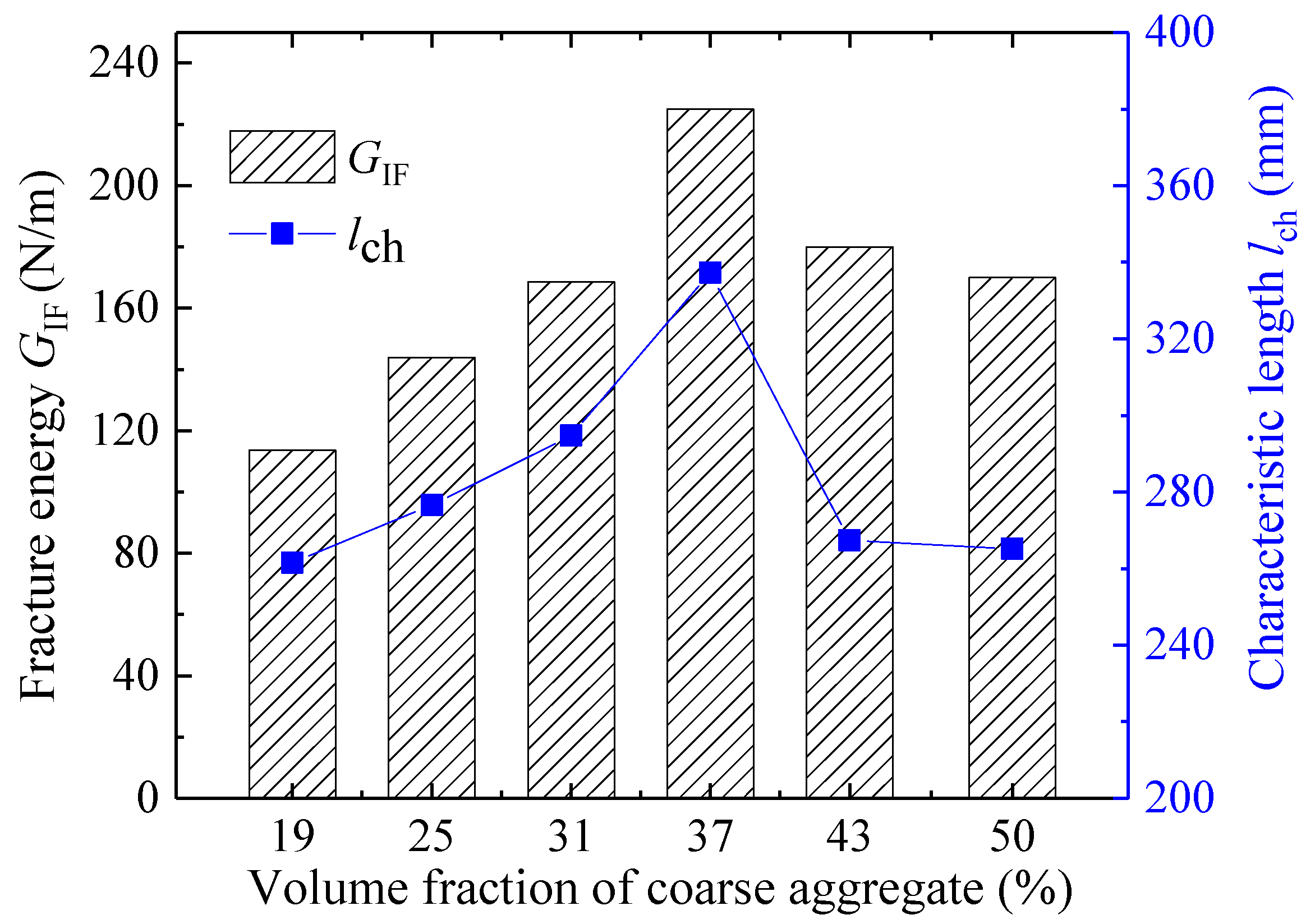 - Chen, Y.; Li, X.; Li, Z.; Yuan, Y.; Feng, J. Toughening and Toughness Degradation of Concrete Under Varying Volume Fractions of Coarse Aggregate. Theor. Appl. Fract. Mech. 2025, 138, 104976. [Google Scholar] [CrossRef]