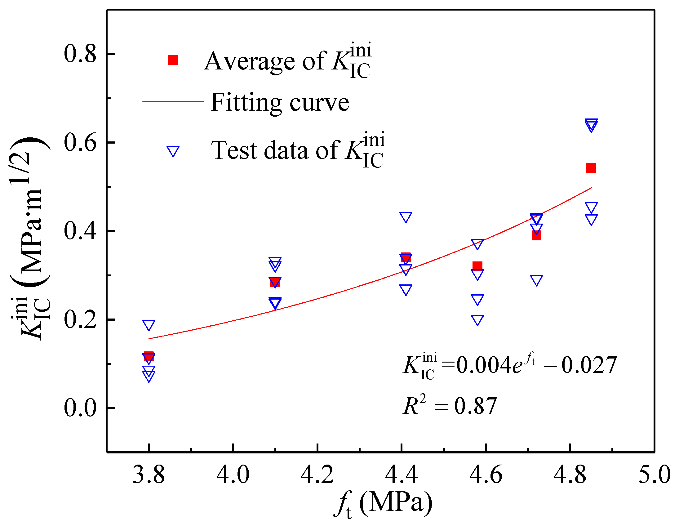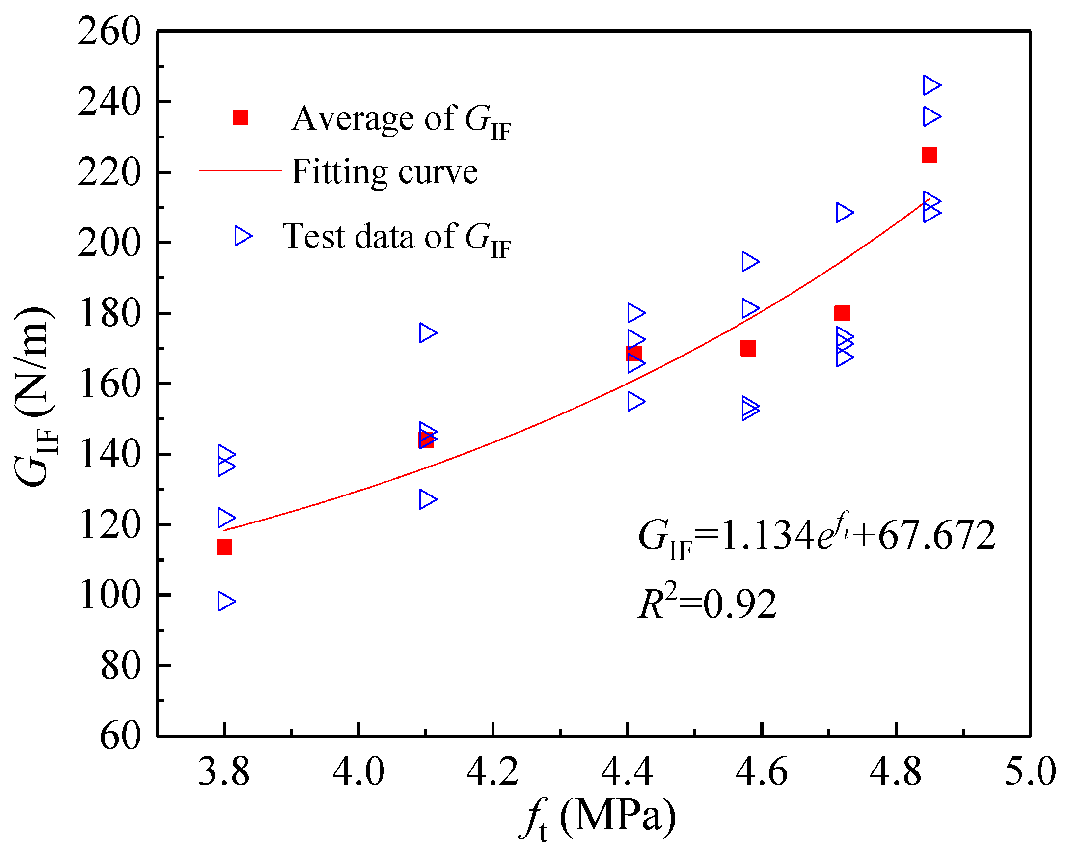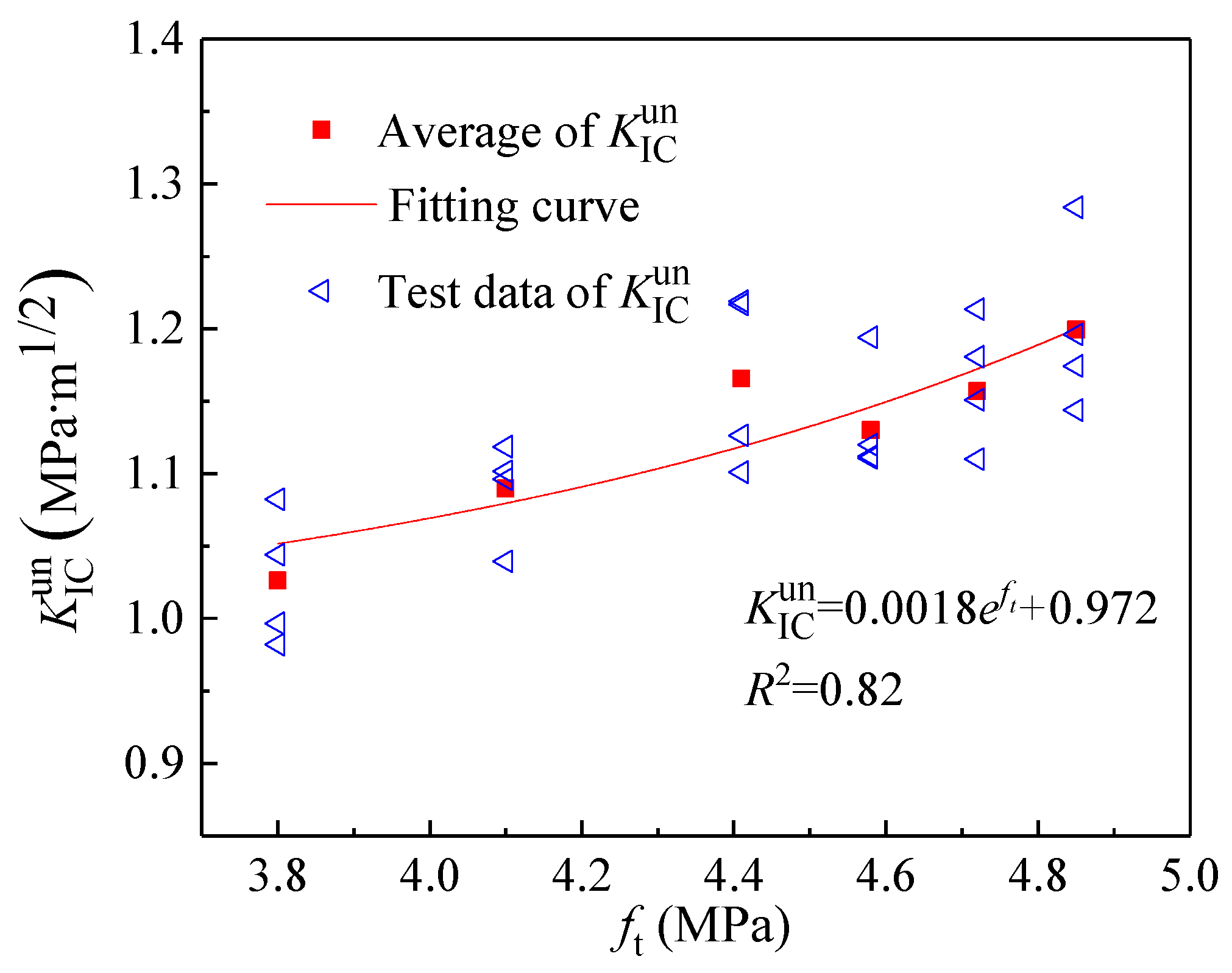 - Quantitative Relationships: Strong exponential correlations were established between ft and , , and GIF. These relationships facilitate the prediction of fracture properties based on the more readily measurable tensile strength.