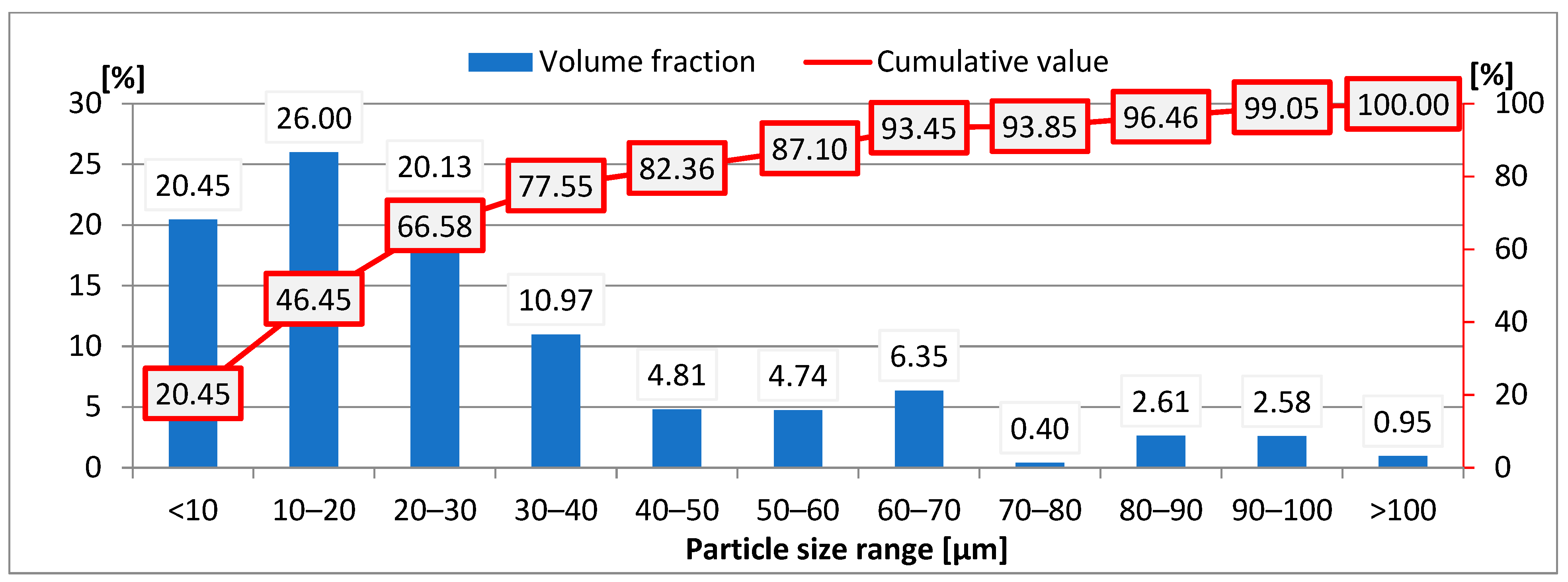 | Volume Fraction [%] | Cumulative Value [%] | ||