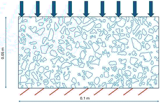 In Figure 1a, the high-quality image of the analyzed AC specimen is presented. In Figure 1b, the corresponding microstructure geometry is shown.